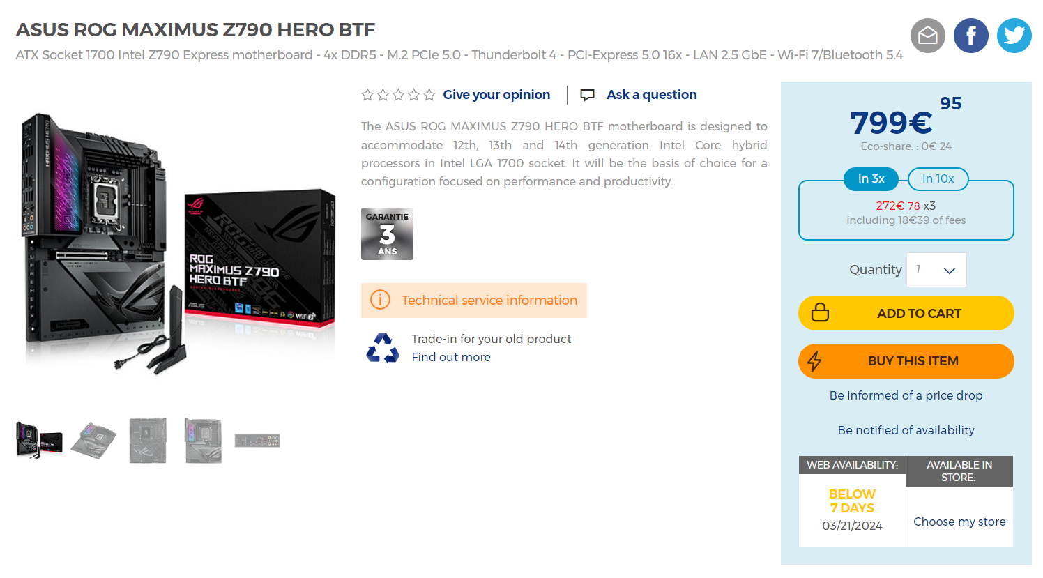 วันนี้ก็มีข่าวจากฝั่ง ASUS มาอัพเดทให้ทุกท่านได้ชมกันครับกับข่าวของเมนบอร์ด ASUS ROG Maximus Z790 HERO BTF ด้วยดีไซน์การออกแบบขั้วต่อไฟด้านหลังมาสู่เมนบอร์ดกับเมนบอร์ดระดับระดับไฮเอนด์รุ่นแรกในตระกูล ROG ซึ่งเมนบอร์ด Z790 ROG Maximus HERO BTF และ ROG STRIX GeForce RTX 4090 BTF ได้ทำการเปิดตัวในช่วงต้นปีที่ผ่านมาในงาน CES2024 โดยผลิตภัณฑ์ทั้งสองนี้ได้รับการพัฒนาเหนือกว่ากลุ่มผลิตภัณฑ์ TUF BTF ที่วางจำหน่ายตั้งแต่ปีที่แล้ว สำหรับ ASUS ROG Maximus Z790 HERO BTF ใช้ซ็อกเก็ต LGA 1700 ซึ่งจ่ายไฟด้วยการจ่ายไฟ 20+1+2 เฟส และเพิ่มพลังด้วยขั้วต่อ 8 พินสองตัว เมนบอร์ดมีสล็อต DDR5 DIMM สี่ช่อง ซึ่งรองรับความเร็วสูงสุด 8000+ MT/s และความจุ DDR5 สูงสุด 256 GB พร้อมอัพเดต BIOS ล่าสุด ราคาวางจำหน่ายที่ปรากฏในร้านค้าออนไลน์ฝั่งยุโรปอยู่ที่ 799ยูโร สำหรับในไทยเราก็ต้องรอไปก่อนครับ