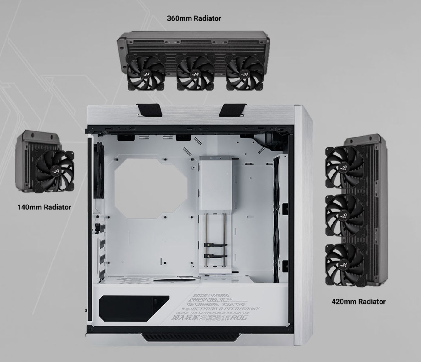 ASUS ผู้ผลิตอุปกรณ์พีซีชั้นนำของโลกประกาศเปิดตัวเคส ASUS ROG Strix Helios White Edition มาในโทนสีขาวรุ่นใหม่ล่าสุดที่มาพร้อมสีขาวเน้นดีไซน์ที่สวยงามโดยเฉพาะ โดยเคส ASUS ROG Strix Helios เป็น tower PC case มีไฟ RGB ที่ด้านหน้าและกระจกเคสด้านข้างออกแบบรองรับขนาด ATX และ E-ATX ขนาดโดยรวมอยู่ที่ 250 mm width, 565 mm depth, 591 mm height โดยมีชุดพัดลมรอบตัวเคสตั้งแต่ front 120 / 140mmx3 (140mmx3 standard), top 140mmx2 or 120mmx3, rear 120 / 140mmx1 (140mm fan standard). และรองรับการติดตั้งชุดหม้อน้ำขนาด 420mm ที่ด้านหน้า ขนาด 360mm ด้านบน และขนาด 140mm ที่ด้านหลัง โดยเคส ASUS ROG Strix Helios พร้อมจะวางจำหน่ายในเร็วๆนี้ครับ