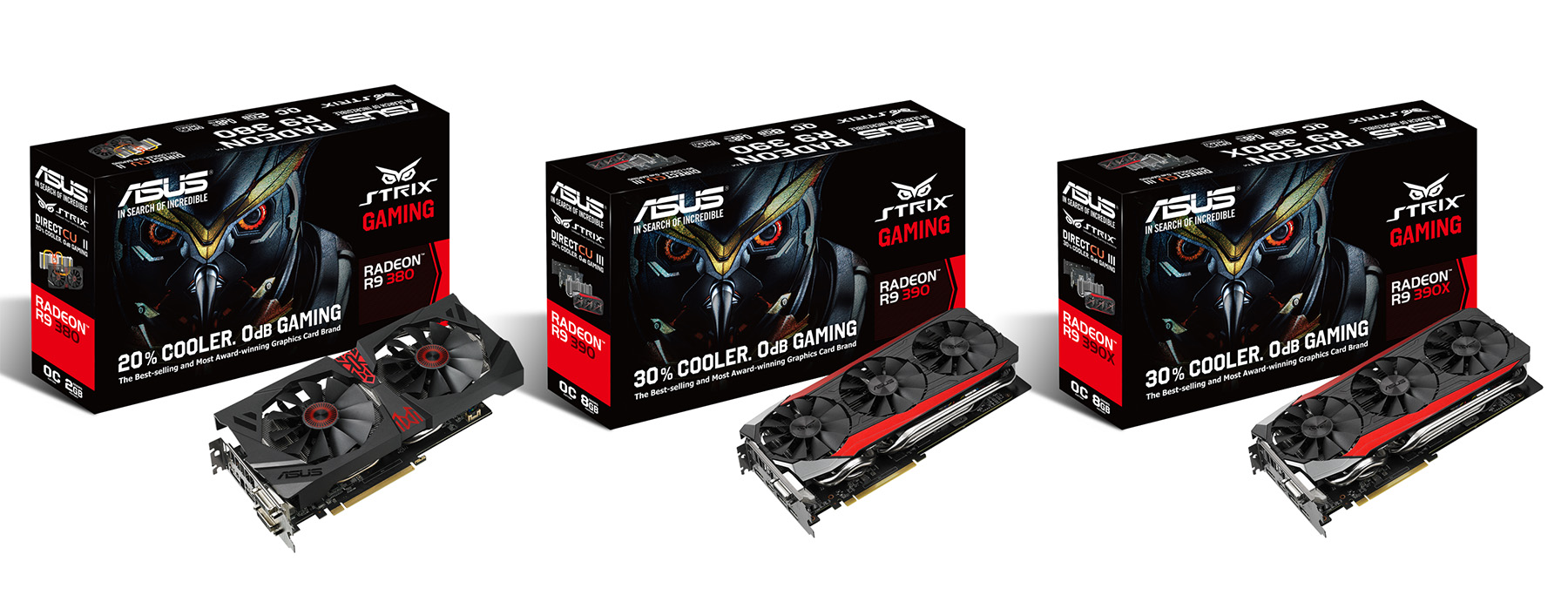 เอซุสเปิดตัวกราฟิกการ์ด Strix R9 390X, R9 390 และ R9 380 ขับเคลื่อนด้วยขุมพลัง GPU ใหม่ล่าสุด AMD® Radeon™กราฟิกการ์ดจากค่ายแดง ในคราบของนกฮูกกลุ่มStrix Series ด้วยชิ้นส่วนระดับพรีเมี่ยม Super Alloy Power