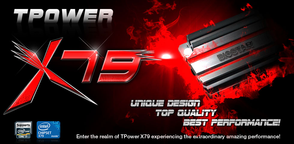 ด้วยหน่วยประมวลผลล่าสุด Intel SNB-E พร้อมด้วยซ็อกเกต LGA 2011 ชิพเซต X79 ที่ได้มีการเปิดตัวไปเมื่อไม่นานมานี้ ซึ่งทาง BIOSTAR ก็ได้เปิดตัวเมนบอร์ด TPOWER X79 เพื่อเป็นการบ่งบอกถึงความเป็นนักโอเวอร์คล๊อกที่มากด้วยฟังก์ชั่นและฟีเจอร์ต่างๆ อย่างครบถ้วน ที่ให้คุณภาพสูงกว่ามาตรฐานของเมนบอร์ดทั่วไป TPOWER X79 มีประสิทธิภาพสูงในเรื่องของการออกแบบท่อระบายความร้อน (Heat-Pipe) 3 -way CrossFire SLI อีกทั้งรองรับหน่วยความจำ 4 ช่อง พอร์ต USB 3.0 8 พอร์ต และ ระบบไฟที่หรูหราอลังการ ถึง 9 เฟส