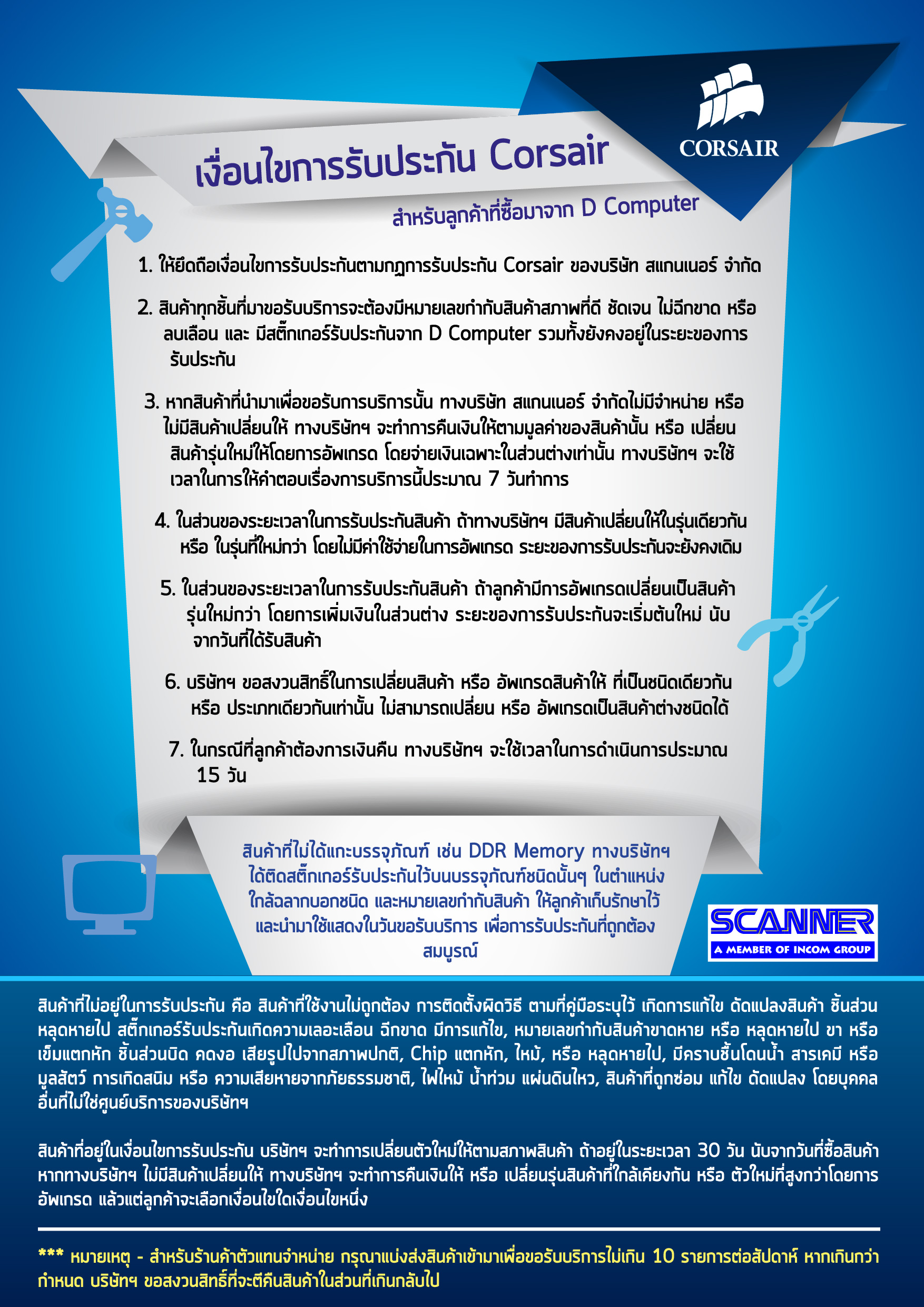 มั่นใจ หายห่วง กับการรับประกันสินค้า CORSAIR (ซื้อจาก DCOM ก็เคลมกับ SCANNER ได้ !!)