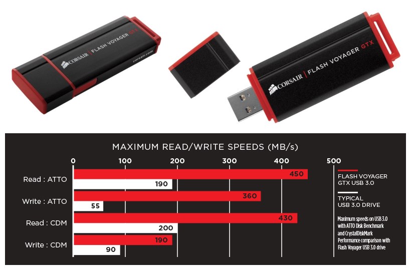 Corsair ปล่อย USB แฟลชไดร์สุดเทพ Flash Voyager GTX ลงสู่ตลาดแล้ว Corsair ได้นำเสนอ Flash Drive ที่เร็วที่สุดเท่าที่เคยมีมา ด้วยความเร็วในการอ่านสูงถึง 450MB/Sec และมาพร้อมความจุใหญ่สะใจถึง 256GB