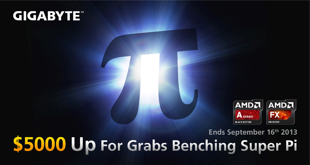 การแข่งขัน ‘Pi is Returned’ contest จะเป็นการทดสอบผ่าน AMD FM2 และ AM3+ platform, ในแต่ละรอบการแข่งขันผู้เข้าร่วมจะต้องผ่านการทดสอบ SuperPi 1M และ SuperPi 32M benchmarks โดยผู้ชนะอันดับ 1 และ 2 จะได้รับเงินรางวัลรวมมูลค่า $5,000 US Dollars, ผู้ชนะอันดับ 3 จะได้รับเมนบอร์ด GIGABYTE F2A85XN-WIFI และ GIGABYTE 990FXA-UD3 พร้อมกับ CPUs และ APUs นอกจากนี้ยังมีเงินรางวัลเพิ่มเติมสำหรับผู้ที่ทำสถิติ World Record สูงสุดในแต่ละรอบการแข่งขันอีกด้วย