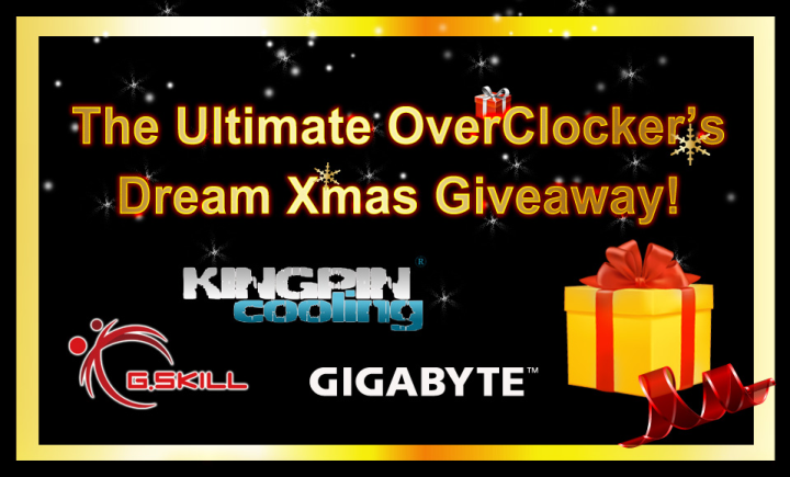 ไทเป, ไต้หวัน, วันที่ 13 ธันวาคม, 2012 - GIGABYTE TECHNOLOGY Co. Ltd., ผู้ผลิตอันดับหนึ่งในอุตสาหกรรมเมนบอร์ด และกราฟิกการ์ดระดับโลกมีความยินดีเป็นอย่างยิ่งที่จะประกาศเปิดตัวกิจกรรม ‘Ultimate OverClockers Dream Xmas Giveaway’ ซึ่งเป็นการร่วมสนุกบน Facebook และได้รับการสนับสนุนจาก KINGPIN Cooling และ G.SKILL memory