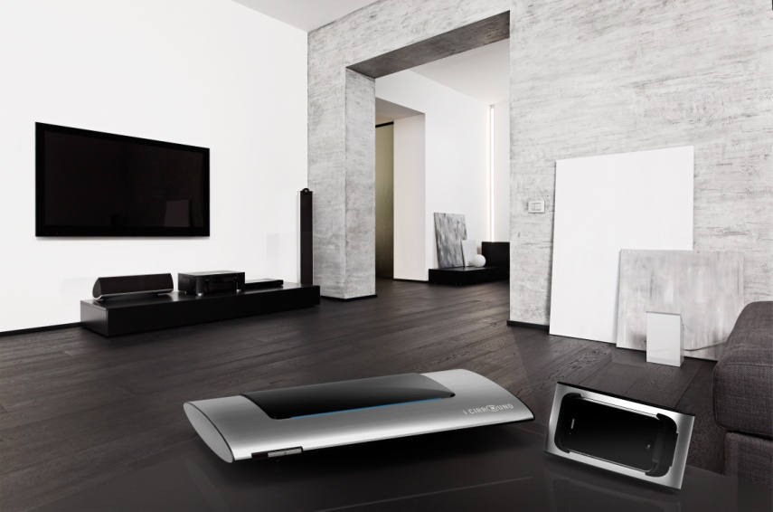 Combining cloud, interactive and multimedia, AirMedia designed by iCIRROUND and the famous design team –GIXIA transfers the contents in iPhone 4/4S to the digital screen even in the environment without WiFi. It makes home to be a small theater so that people can enjoy the audio feast at home.