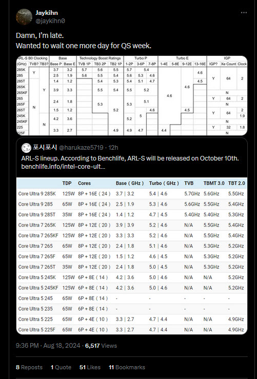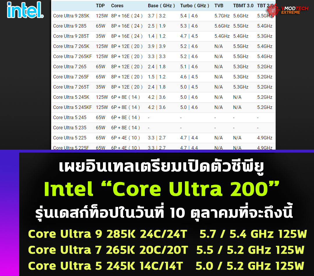 เผยอินเทลเตรียมเปิดตัวซีพียู Intel Arrow Lake-S “Core Ultra 200” รุ่นเดสก์ท็อปในวันที่ 10 ตุลาคมที่จะถึงนี้