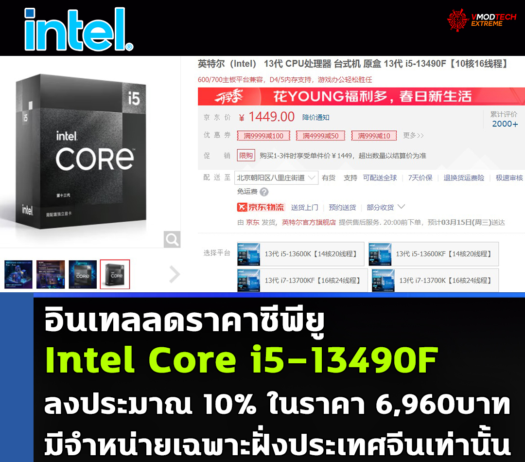 วันนี้ก็มีข่าวจากฝั่ง Intel ออกมาให้เราได้ชมกันครับกับข่าวของซีพียู Intel Core i5-13490F ที่ปรับราคาลงในฝั่งประเทศจีนประมาณ 10% ตามรายงานของ Expreview โดยราคา i5-13490F เปิดตัวที่ราคา 1599หยวน ในวันที่ 7 กุมภาพันธ์ ลดราคาเหลือลงเหลือ 1449หยวนในเวลาเพียง 1เดือน แต่สำหรับรุ่น Core i7-13790F นั้นยังไม่เปลี่ยนแปลงครับ สำหรับซีพียู Intel Core i5-13490F และ Core i7-13790F นั้นมีจำหน่ายเฉพาะฝั่งประเทศจีนเท่านั้นครับ
