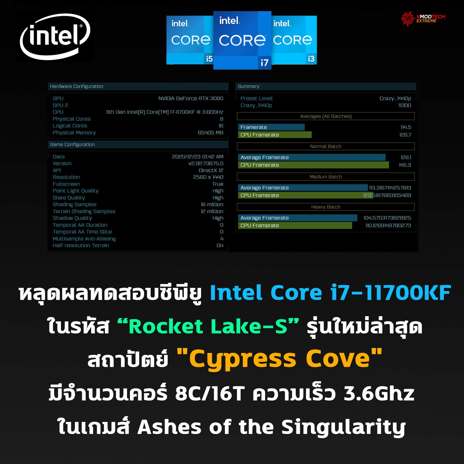 หลุดผลทดสอบซีพียู Intel Core i7-11700KF ในรหัส Rocket Lake-S รุ่นใหม่ล่าสุดในเกมส์ Ashes of the Singularity