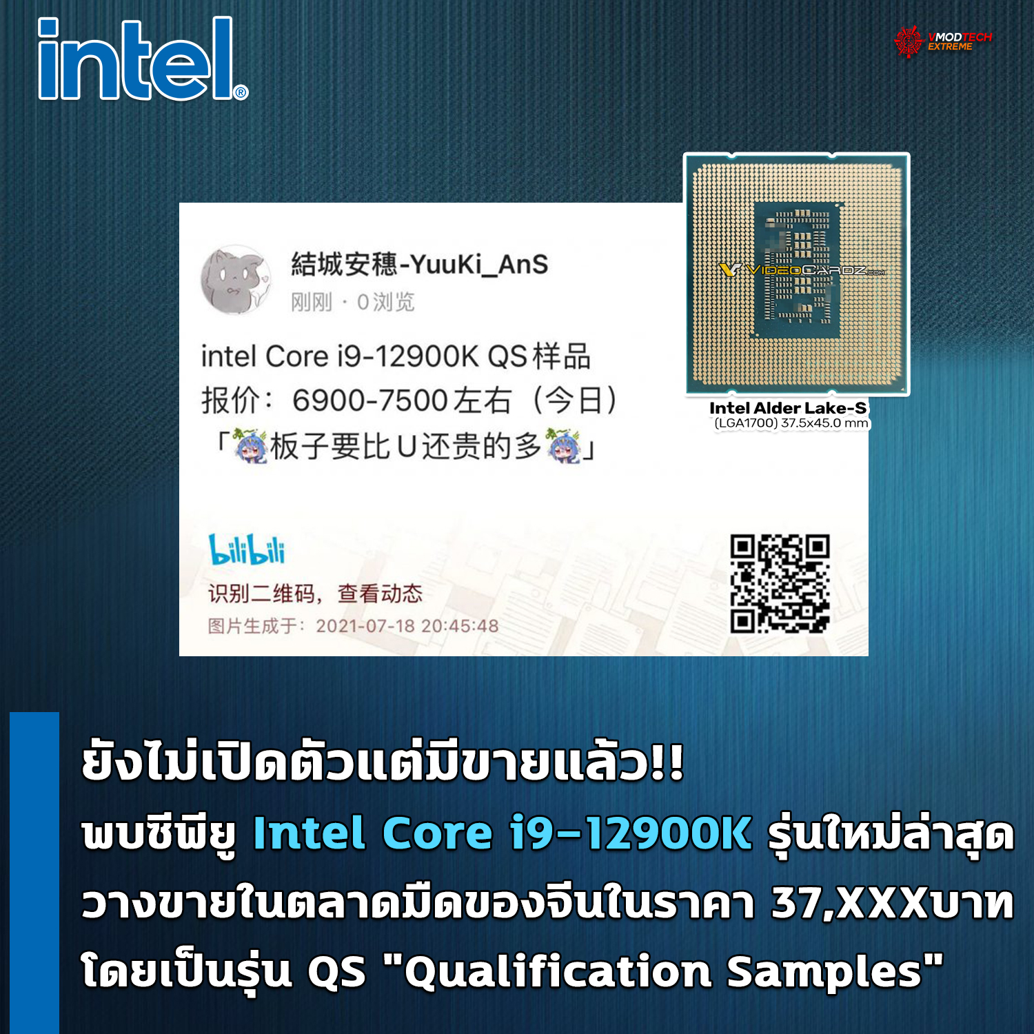 วันนี้ก็มีข่าวจากฝั่ง Intel หลุดออกมาให้เราได้ชมกันอีกครั้งครับกับข่าวของซีพียู Intel Core i9-12900K รุ่นใหม่ล่าสุด ในรหัส Alder Lake-S ที่มีการพบข้อมูลจากทาง Yuuki_AnS ที่ได้เผยว่ามีขายในตลาดมืดในประเทสจีนเป็นที่เรียบร้อย โดยมีราคาวางจำหน่ายอยู่ที่ 6900 - 7500 CNY หยวน หรือประมาณ 1064 - 1157 USD ถ้าตีเป็นเงินไทยตกประมาณ 37,XXXบาทไทยครับ โดยข้อมูลดังกล่าวก็สอดคล้องกับก่อนหน้านี้ที่มีการผลทดสอบหรือแม้กระทั่งตัวซีพียูออกมาเปิดเผยกัน แต่สำหรับที่มาและรูปนั้นทางผู้ให้ข้อมูลนั้นไม่กล้าเปิดเผยออกมา คาดว่าบรรดาซีพียูที่นำมาขายนั้นจะเป็นรุ่นตัวอย่างทดลองหรือ QS “Qualification Samples” นั่นเองครับ ซึ่งตัวซีพียูก็ยังไม่ใช่เวอร์ชั่นที่สมบรูณ์อาจจะมีการลดความเร็วและปิดฟังก์ชั่นอื่นๆ ออกไป โดยกำหนดการที่คาดว่าทาง Intel จะเปิดตัวซีพียู Intel 12th Gen นั้นจะอยู่ในช่วงปลายปีนี้ อย่างช้าคือต้นปีหน้า สำหรับ Intel Core i9-12900K นั้นจะใช้เทคโนโลยีคอร์ใหญ่+คอร์เล็กในการทำงาน มีจำนวนคอร์ 16C/24T ความเร็ว 3.7Ghz - 5.3Ghz อัตราบริโภคไฟ 125W PL1 และ 228W PL2 ก็รอติดตามกันดูครับว่าทาง Intel จะออกมาเปิดเปยข้อมูลอย่างเป็นทางการในช่วงเวลาใด