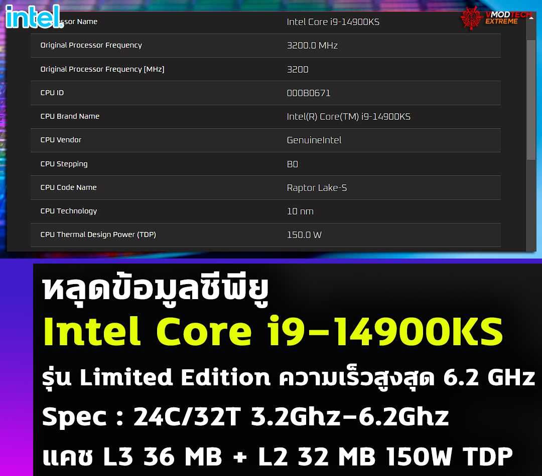หลุดข้อมูลซีพียู Intel Core i9-14900KS Limited Edition ความเร็วสูงสุด 6.2 GHz