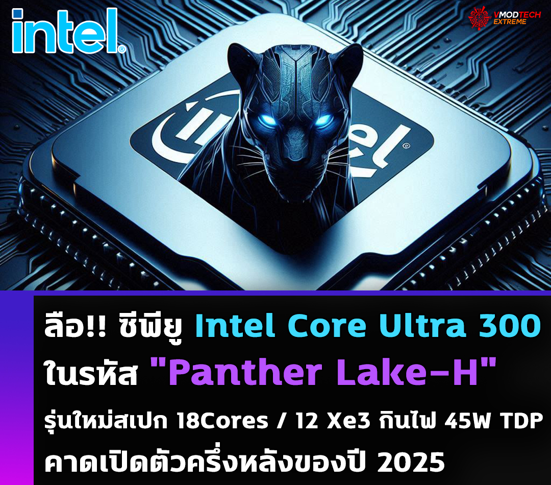 ลือ!! ซีพียู Intel Core Ultra 300 Series ในรหัส “Panther Lake-H” รุ่นใหม่สเปกจำนวนคอร์ 18Cores กราฟฟิก 12 Xe3 GPU Cores และกินไฟ 45W TDP