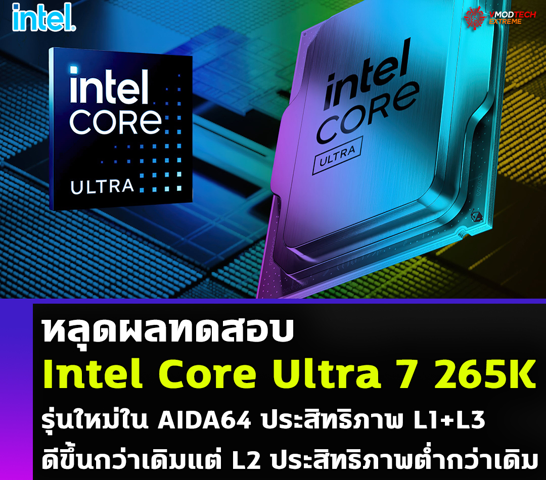 หลุดผลทดสอบ Intel Core Ultra 7 265K รุ่นใหม่ใน AIDA64 ประสิทธิภาพ L1+L3 ดีขึ้นกว่าเดิมแต่ L2 ประสิทธิภาพต่ำกว่าเดิม