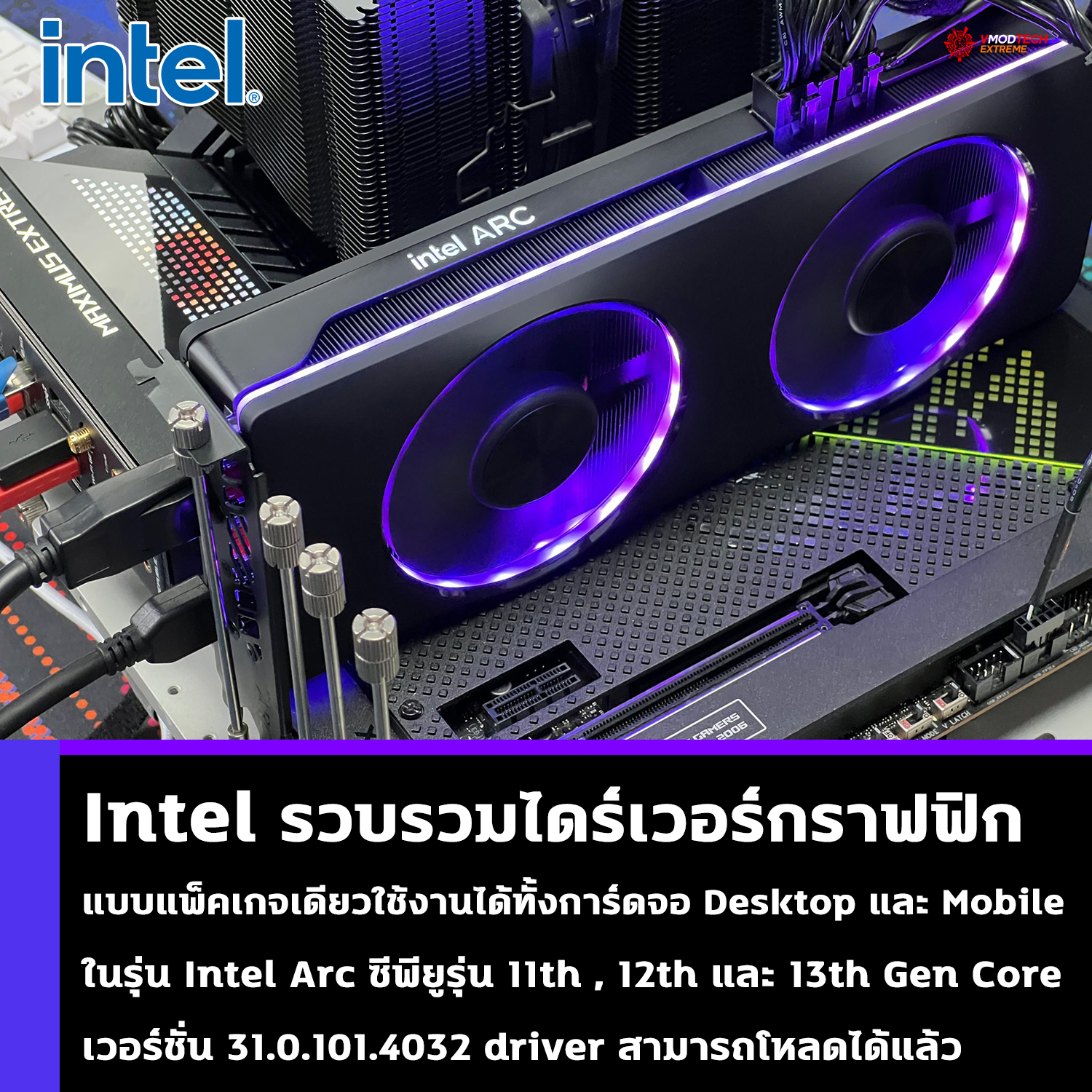 วันนี้ก็มีข่าวจากฝั่ง Intel ที่น่าสนใจมาให้ทุกท่านได้ชมกันครับกับข่าวที่ทาง intel สามารถรวบรวมไดร์เวอร์ไว้ในตัวเดียวหรือแพ็คเกจเดียวใช้งานได้ทั้งการ์ดจอ Intel Arc ซีพียูรุ่น 11th , 12th และ 13th Gen Core แล้วในเวอร์ชั่น 31.0.101.4032 driver โดยรองรับทั้งการ์ดจอแยกอย่าง intel ARC รุ่นใหม่ล่าสุดที่เป็นการ์ดจอแยก Desktop รวมไปถึงกราฟฟิกการ์ดในตัวของซีพียูรุ่นใหม่ล่าสุดอย่าง intel 13th Gen รหัส Raptor Lake และซีพียูในรุ่นเก่าอย่าง 11th , 12th Gen ที่เป็น Mobile อีกด้วยครับ ถือเป็นการพัฒนาไดร์เวอร์ที่สำคัญของทางอินเทลที่ทำให้ผู้ใช้งานสะดวกสบายในการค้นหาไม่ต้องยุ่งยากในการแยกไดร์เวอร์เวอร์ชั่นการ์ดจออีกต่อไปด้วยนั่นเองครับ