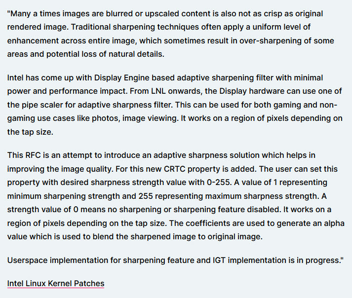 วันนี้ก็มีข่าวจากฝั่ง intel มาอัพเดทให้ทุกท่านได้ชมกันครับกับข่าวของซีพียู Intel Lunar Lake รุ่นใหม่ที่จะเปิดตัวในปลายปีนี้ ที่ใช้สถาปัตยกรรม Xe2 “Battlemage” และจะนำเสนอเทคโนโลยีใหม่มากมาย เช่น Adaptive Sharpening Filter โดยซีพียู Intel Lunar Lake รุ่นใหม่จะมุ่งเน้นไปที่ประสิทธิภาพ/วัตต์ การยกระดับ AI NPU ที่แรงขึ้นถึง 3 เท่า และสถาปัตยกรรม iGPU “Battlemage” ของ Xe2 รุ่นใหม่ล่าสุด สถาปัตยกรรม GPU การ์ดจอของ Battlemage Xe2 ได้รับการยกระดับให้เหนือกว่ากลุ่มผลิตภัณฑ์ Alchemist อย่างมาก ซึ่งเปิดตัวด้วยซีรีส์ Arc สำหรับทั้งเดสก์ท็อปและโน้ตบุ๊ก ตอนนี้ Intel กำลังเตรียมสถาปัตยกรรมการ์ดจอ Battlemage ด้วยคุณสมบัติใหม่มากมาย ซึ่งสนับสนุนเทคโนโลยีใหม่ล่าสุดที่เรียกว่า Adaptive Sharpening Filter จากข้อมูลที่เผยออกมาในแพตช์ Linux Kernel ล่าสุดที่หลุดออกจากทาง Intel โดยคุณสมบัติรองรับเทคโนโลยี Adaptive Sharpening Filter จะทำงานผ่านกลไกการแสดงผลเป็นหลัก และใช้การปรับความคมชัดภายในเกมหรือทีการใช้งานด้านอื่นๆ เช่น วิดีโอและภาพถ่าย ตามบันทึกของแพตช์ จะมีประสิทธิภาพและผลกระทบด้านพลังงานน้อยที่สุด และจะรวมไว้ใน iGPU ที่อยุ่ในซีพียู Lunar Lake ก็ถือเป็นฟีเจอร์และเทคโนโลยีใหม่ที่ทางอินเทลเตรียมจะเปิดตัวในซีพียูรุ่นใหม่ในช่วงปลายปี 2024 นี้ครับ น่าสนใจมากเลยทีเดียว