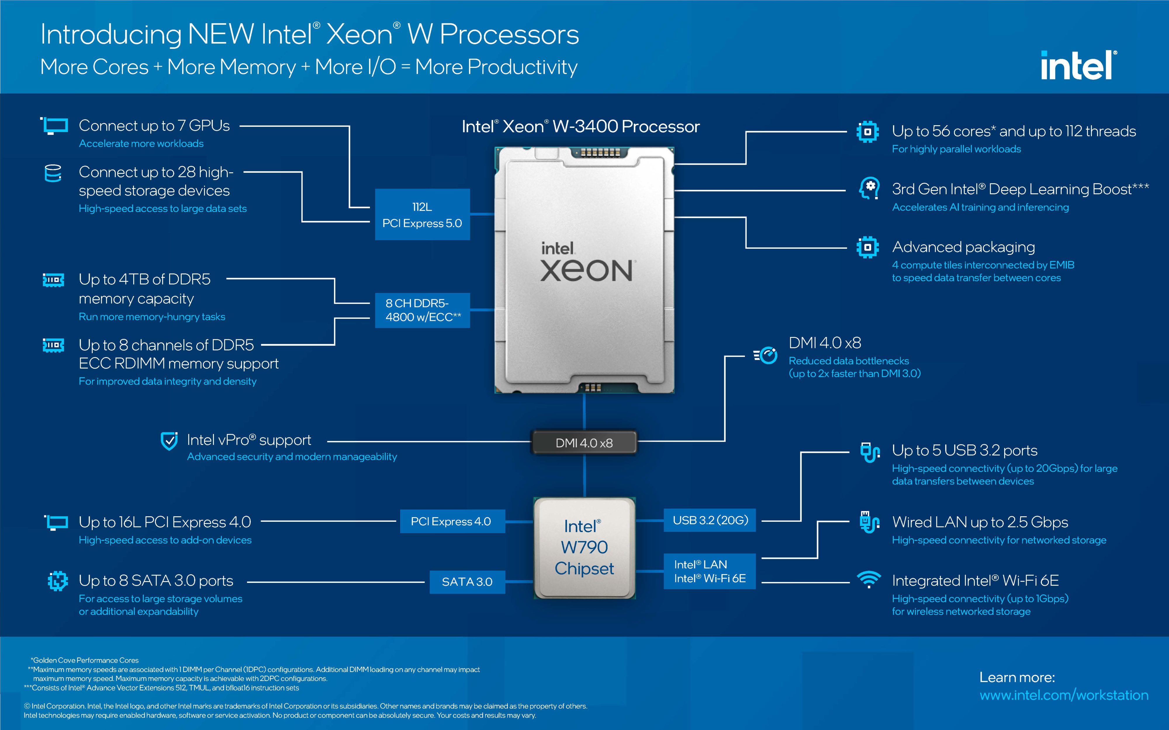 Intel เปิดตัวซีพียู Xeon W3400/2400 workstaion รุ่นใหม่ล่าสุดมาพร้อมขุมพลัง 56C/112T รองรับ PCIe Gen5 รองรับแรม 8-channel DDR5 พร้อมวางจำหน่ายแล้ววันนี้
