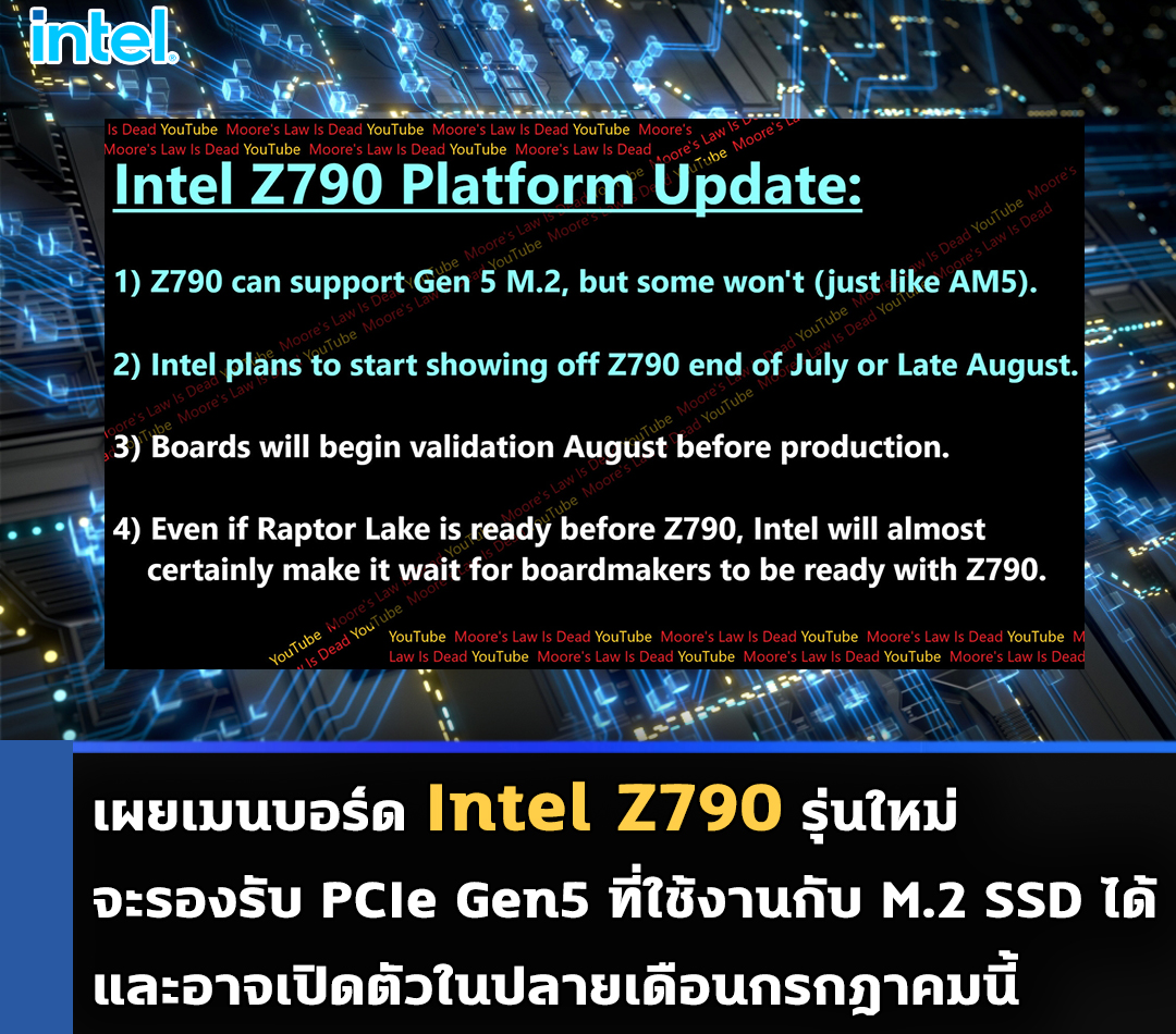 เผยเมนบอร์ด Intel Z790 รุ่นใหม่จะรองรับ PCIe Gen5 ที่ใช้งานกับ M.2 SSD ได้และอาจเปิดตัวในปลายเดือนกรกฎาคมนี้
