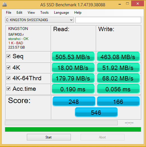 3.ความเร็ว : สำหรับ SSD ที่ใช้เมมโมรีแบบ NAND Flash ให้ความเร็วในการอ่านข้อมูลแบบสุ่มอยู่ที่ประมาณ 300-500MB/s หรือมากกว่า และค่า Access time น้อยกว่า 1msขึ้นอยู่กับในแต่ละรุ่น ถือว่าทำงานได้เกือบเต็มประสิทธิภาพของ SATA III ที่เป็นมาตรฐานที่ใช้กันทั่วไปในเวลานี้ เมื่อเทียบกับความเร็วของ Harddiskในปัจจุบัน ด้วยข้อจำกัดในด้านเทคโนโลยี จึงทำให้ความเร็วในการอ่านข้อมูลแบบสุ่มอยู่ที่ประมาณ 100-200MB/s เท่านั้น ซึ่งเป็นสิ่งที่บ่งบอกได้อย่างชัดเจนสำหรับ SSD เป็นตัวเลือกที่เน้นความเร็วในการทำงานสูงสุด