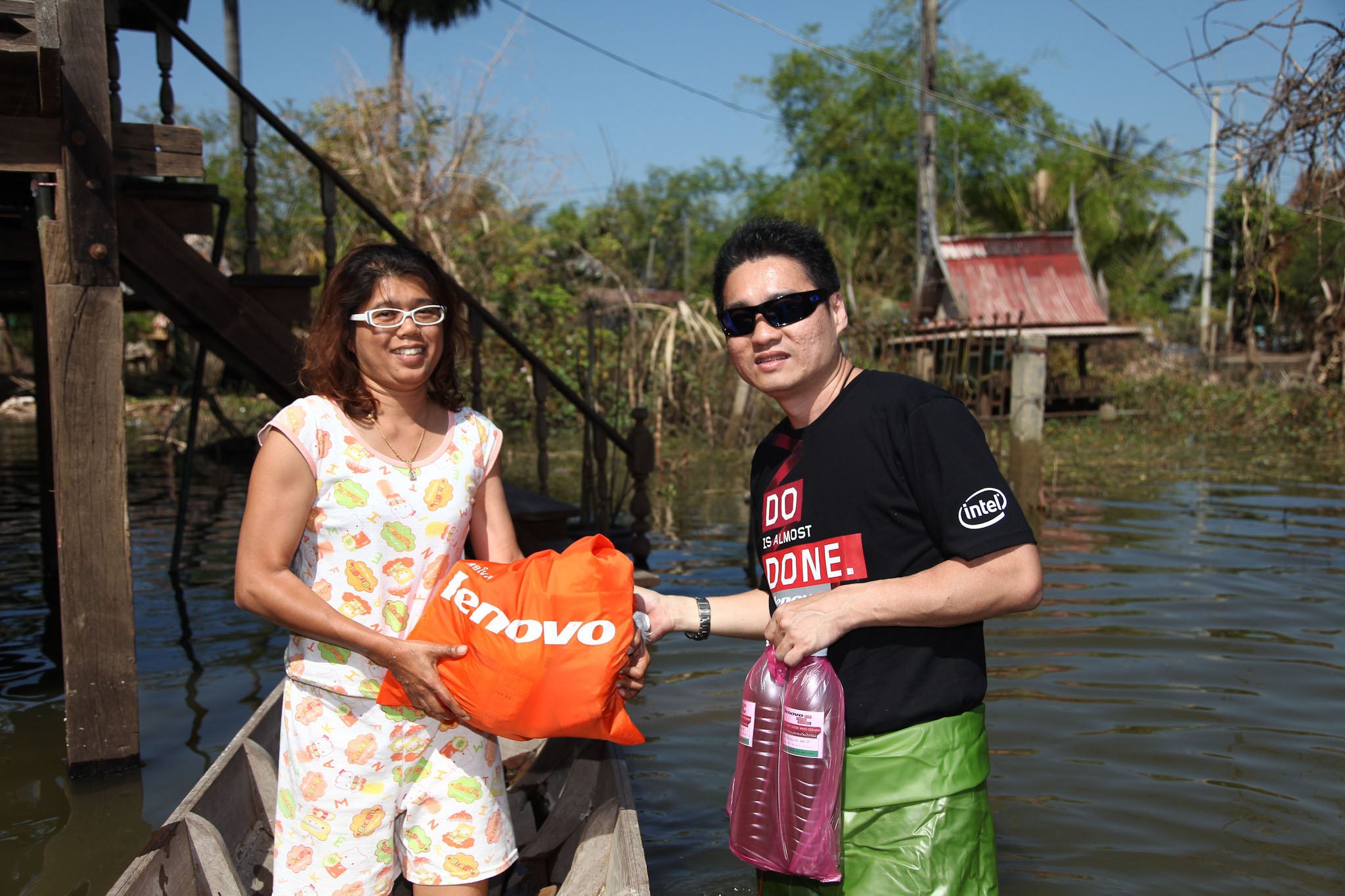โค กอง เม็ง (Koh Kong Meng) ผู้จัดการทั่วไปประจำภาคพื้นอาเซียน บริษัท เลอโนโว กรุ๊ป จำกัด และคุณจีรวุฒิ วงศ์พิมลพร กรรมการผู้จัดการประจำประเทศไทย บริษัท เลอโนโว (ประเทศไทย) จำกัด ห่วงใยพี่น้องชาวไทย นำทัพผู้บริหารจากอาเซียน พันธมิตรของเลอโนโว และอาสาสมัคร พร้อมใจเข้าร่วมกิจกรรม “FOR THOSE WHO Donate” เพื่อช่วยเหลือผู้ประสบภัยน้ำท่วม โดยทำการลงพื้นที่แจกถุงยังชีพและชุดยารักษาโรคให้กับประชาชนที่ยังเดือดร้อนจากปัญหาอุทกภัยในเขตพื้นที่ วัดดอกไม้ จังหวัดอยุธยา และ จังหวัดปทุมธานี นอกจากนี้ เลอโนโวได้บริจาคเงินรวมกว่า 300,000 บาท ผ่านทางครอบครัวข่าว ช่อง 3 และสภากาชาดไทยเช่นกัน