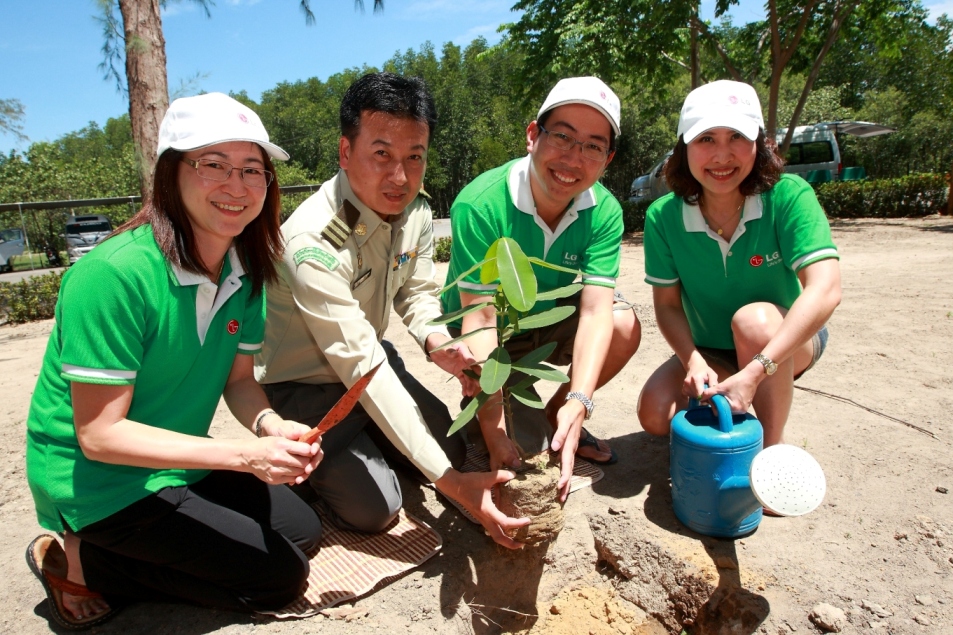 (ประเทศไทย) เป็นอาสาสมัคร ร่วมกิจกรรมปลูกป่าชายหาดและป่าชายเลน ซึ่งเป็นส่วนหนึ่งของโครงการ LG Life’s Green Life’s Good เนื่องในวันอาสาสมัครประจำปีของแอลจีทั่วโลก