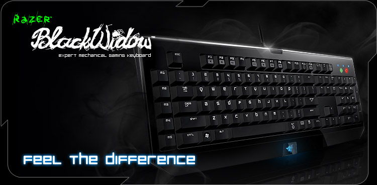 “Razer Blackwidow” เป็นคีย์บอร์ดแบบ Mechanical ที่แสดงผลได้อย่างรวดเร็ว ให้สัมผัสความรู้สึกที่แตกต่าง มีปุ่ม Marco 5 ปุ่ม พร้อมกับระบบการกำหนดและบันทึกค่าโปรไฟล์ ได้สูงสุดถึง 10 รูปแบบ ให้ง่ายต่อการใช้งานยิ่งขึ้นอีกด้วย สาย USB เป็นสายถักคงทนแข็งแรง หวังว่าจะถูกอกถูกใจกันนะครับ