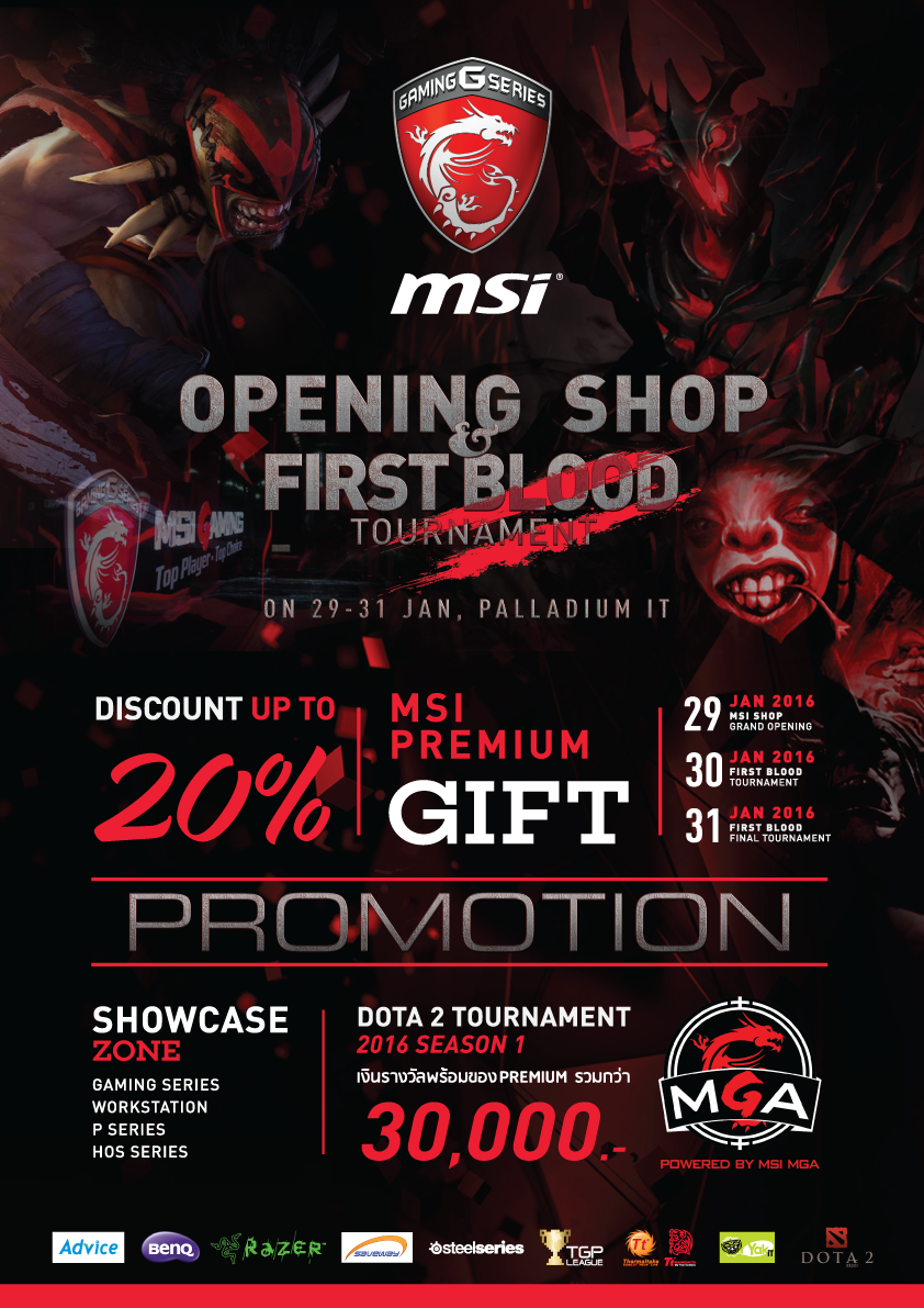 MSI OPENING SHOP & FIRST BLOOD TOURNAMENT 2016 at Palladium IT พบกับการเปิดตัว MSI Brand Shop แห่งแรกของประเทศไทย และการแข่งขัน Dota2 สุดมันส์