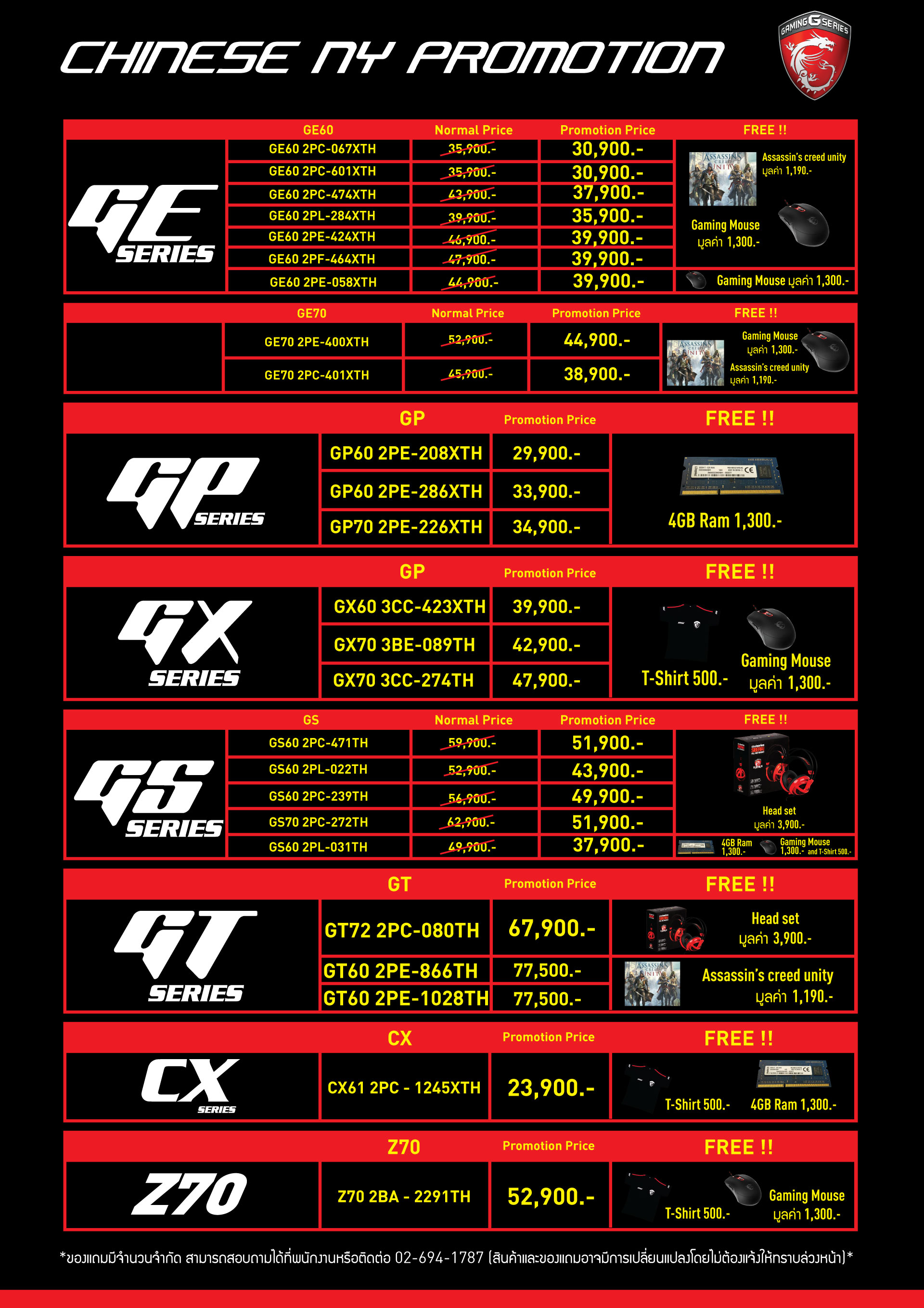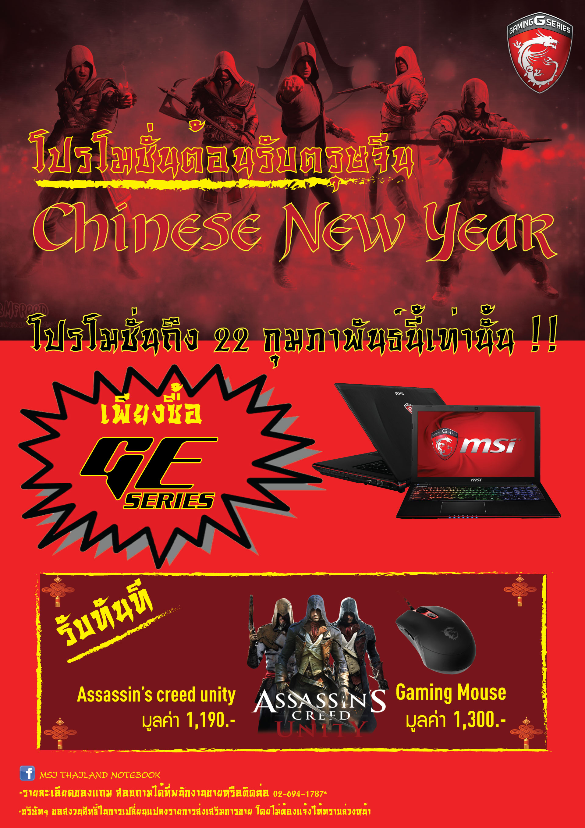 ……….ทางบริษัท MSI ประเทศไทยจะทำการจัดงาน MSI Pantip Roadshow 2015 ที่ห้างพันธุ์ทิพย์พลาซ่าประตูน้ำตั้งแต่วันที่ 10-17 กุมภาพันธ์ 2557 โดยมีสินสินค้ากลุ่มเกมมิ่งโน้ตบุ๊คของทางบริษัทมาจัดโปรโมชั่นลดราคาหลายหลายรุ่น