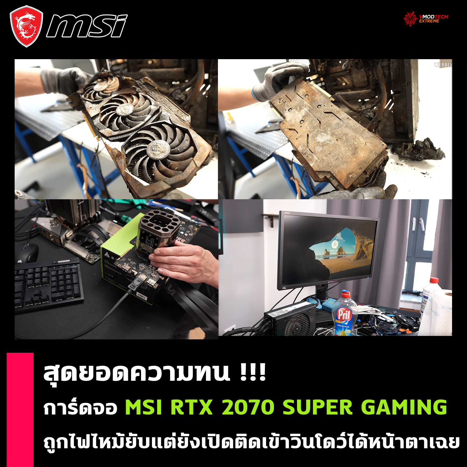 สุดยอดความทน!!! การ์ดจอ MSI RTX 2070 SUPER GAMING ถูกไฟไหม้ยับแต่ยังเปิดติดเข้าวินโดว์ได้หน้าตาเฉย