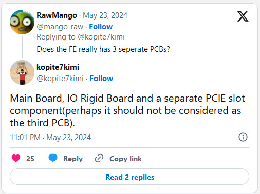 วันนี้ก็มีข่าวจากฝั่ง Nvidia ออกมาให้เราออกมาได้รับชมกันครับกับข่าวของการ์ดจอ NVIDIA GeForce RTX 5090 Founders Edition ที่คาดว่ากำลังจะเปิดตัวในเร็วๆ นี้ จากการเปิดเผยของทาง kopite7kimi ที่ได้เปิดเผยว่า NVIDIA GeForce RTX 5090 Founders Edition จะมี PCB แบ่งออกเป็นสามส่วนในการใช้งานร่วมกัน โดยมีแผ่นบอร์ดหลัก, บอร์ดแข็ง IO และส่วนประกอบสล็อต PCIE แยกต่างหาก ก็ถือเป็นข่าวที่ออกมาน่าสนใจครับจากก่อนหน้านี้ก็มีข่าวว่าจะใช้ PCB แยกออกเป็น 3ส่วนรายงานตรงกัน ส่วนข้อดีจะเป็นอย่างไรนั้นเรายังไม่ทราบแน่ชัดครับว่าทำไมต้องแยก ซึ่งถ้าแยก PCB ออกก็จะคล้ายๆ กับการ์ดจอ nvidia 9800 gx2 ที่จะมีชั้น PCB แยกเหมือนกันครับ สำหรับการ์ดจอ NVIDIA GeForce RTX 5090 Founders Edition จะใช้ชิป GB202 แรมแบบ GDDR7 รุ่นใหม่ คาดจะเผยข้อมูลในงาน Computex 2024 ที่จะถึงนี้ครับ