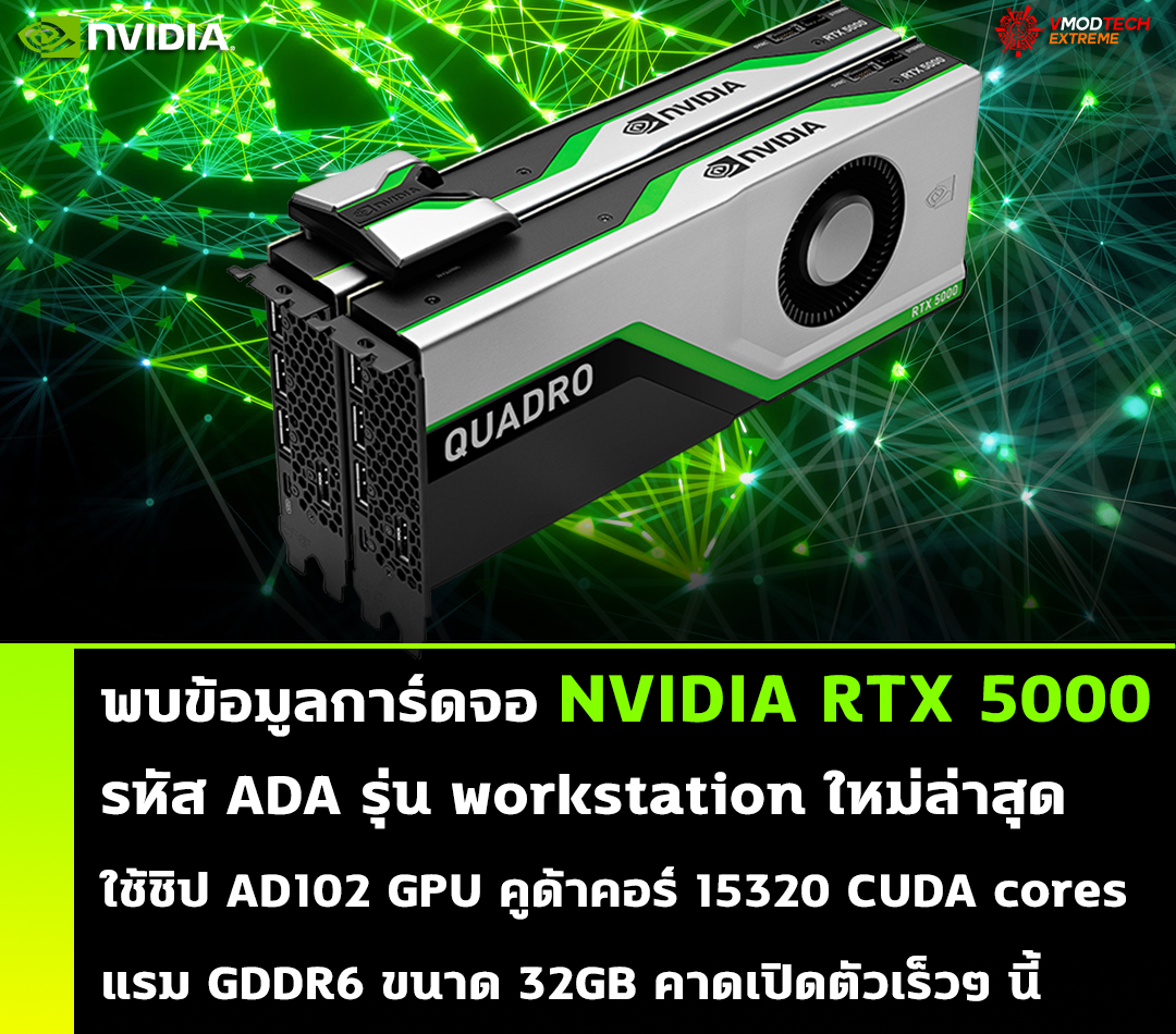 วันนี้ก็มีข่าวจากฝั่ง Nvidia หลุดออกมาให้เราได้ชมกันครับกับข่าวของการ์ดจอ Workstation ในรุ่น NVIDIA RTX 5000 รหัส “Ada Generation” รุ่นใหม่ในไดรเวอร์การทำงาน โดยมีรหัสอุปกรณ์ของ “26B2” NVIDIA_DEV.26B2 ซึ่งข่อมูลที่ผ่านมานั้น RTX 5000 Ada คาดว่าใช้ชิป AD102 GPU ที่มีจำนวนคูด้าคอร์ 15320 CUDA cores มาพร้อมหน่วยความจำ GDDR6 ขนาด 32GB โดยทาง nvidia ยังไม่ยืนยันการเปิดตัวอย่างเป็นทางการออกมาครับ แต่คาดว่าน่าจะเปิดตัวในเร็วๆ นี้