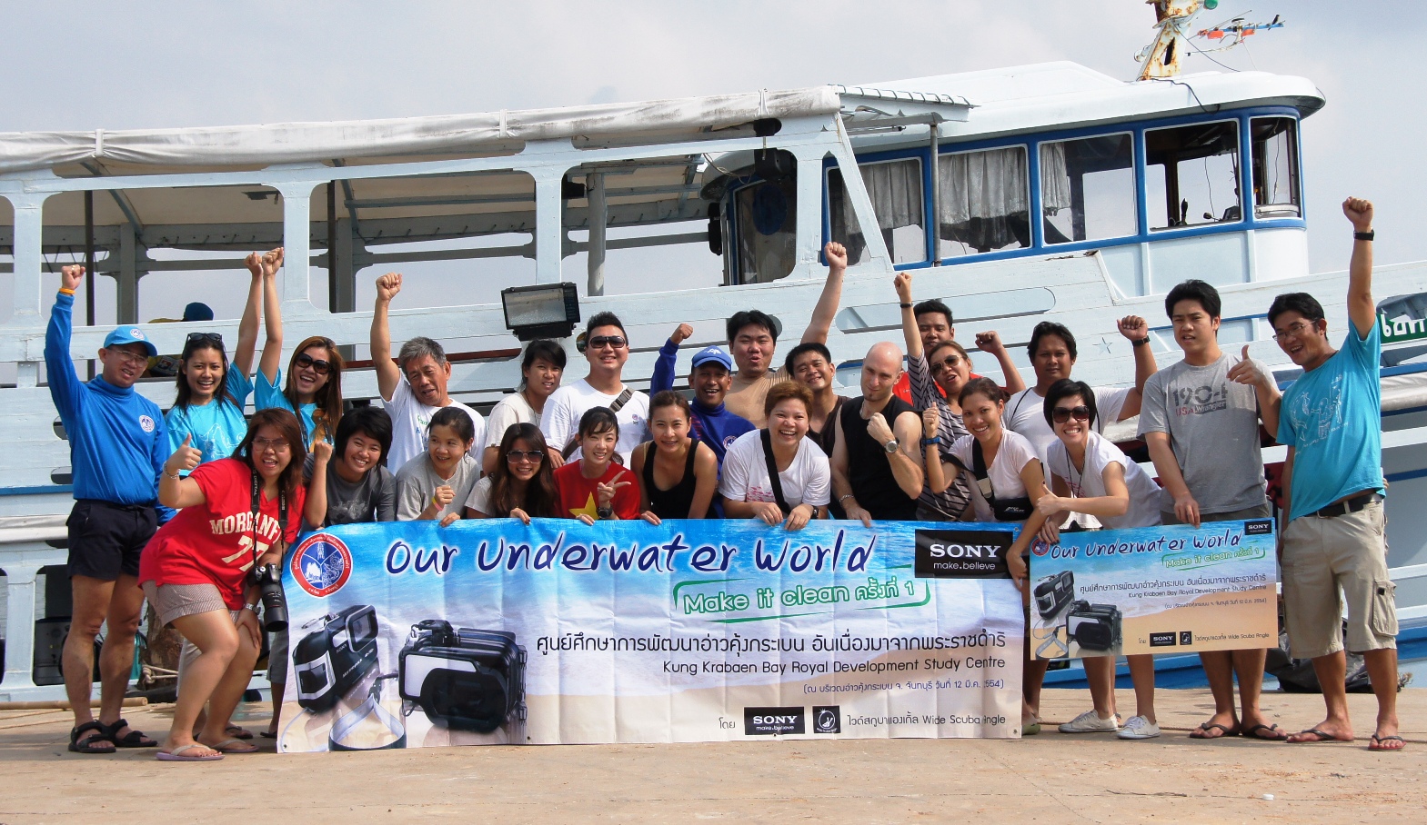 โครงการ Our Underwater World - Make it clean ครั้งที่ 1 จัดขึ้นโดยมีวัตถุประสงค์เพื่อสร้างจิตสำนึก อนุรักษ์ และฟื้นฟู ทรัพยากรใต้ท้องทะเลไทย โดยได้รับความร่วมมือจากศูนย์ศึกษาการพัฒนาอ่าวคุ้งกระเบน อันเนื่องมาจากพระราชดำริ และนักดำน้ำอาสาสมัคร จากสาขาอาชีพต่าง ๆ พร้อมด้วยพนักงาน โซนี่ไทยจำนวนกว่า 30 คน เข้าร่วมกิจกรรม และร่วมมือกันฟื้นฟู กำจัดซากเศษอวนที่ตกค้างใต้ท้องทะเล เนื่องจากจังหวัดจันทบุรี มีทรัพยากรใต้ทะเลที่อุดมสมบูรณ์ ปัจจุบันเป็นแหล่งทำมาหากินของชาวบ้านในพื้นที่ซึ่งประกอบอาชีพประมง แต่ ด้วยสภาพภูมิประเทศใต้ทะเลของจังหวัดจันทบุรี มีกองหินใต้น้ำจำนวนมาก เมื่อชาวประมงทำการประมงโดยใช้อุปกรณ์ต่าง ๆ เช่นการลากอวน จึงทำให้อวนบางส่วนติดกองหินใต้น้ำ เมื่อไม่สามารถกู้อวนที่ติดขึ้นมาได้ก็จะทิ้งเศษอวนเหล่านั้นไว้ใต้น้ำ จึงทำให้เศษอวนเหล่านั้นกลายเป็นขยะที่ตกค้างสะสมอยู่เป็นเวลานาน สร้างความเสียหายให้กับแนวปะการัง และระบบนิเวศน์ของสัตว์ทะเล แม้ว่าศูนย์ศึกษาการพัฒนาอ่าวคุ้งกระเบน อันเนื่องมาจากพระราชดำริ ได้มีการจัดกิจกรรมเก็บขยะตัดอวนในบริเวณทะเล อ่าวคุ้งกระเบน เป็นประจำ แต่ด้วยขนาดพื้นที่ทางทะเลในจังหวัดจันทบุรีที่กว้างขวาง และมีกองหินใต้น้ำจำนวนมาก จึงเป็นการยากที่จะกำจัดขยะเหล่านั้นให้หมดไปในระยะเวลาอันสั้น ดังนั้น โซนี่ได้เล็งเห็นถึงความสำคัญของโครงการ Our Underwater World - Make it clean ซึ่งมีส่วนช่วยอนุรักษ์สภาพแวดล้อมทางทะเล และปลูกฝังจิตสำนึกความรับผิดชอบด้านสิ่งแวดล้อม จึงมีความยินดี และร่วมให้การสนับสนุนอุปกรณ์ต่าง ๆ เพื่ออำนวยความสะดวกในการจัดกิจกรรมในครั้งนี้ให้สำเร็จลุล่วงด้วยดี