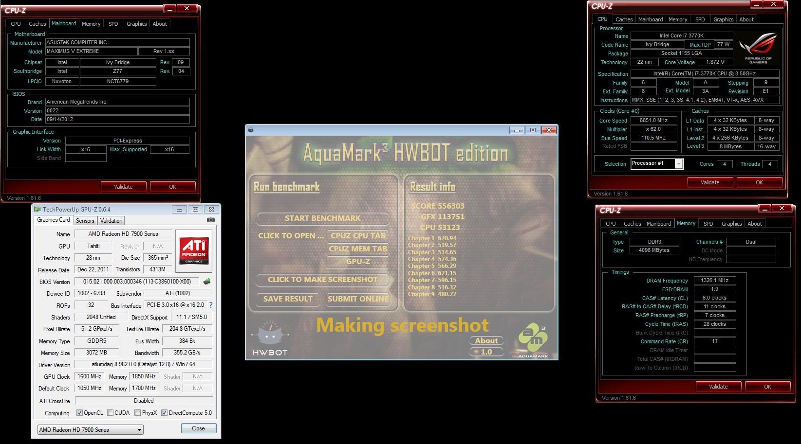 ทางทีม TeamRUได้สร้างอีกหนึ่งสถิติใหม่ในโปรแกรมยอดนิยม Guru3D graphics card stress tester ซึ่งได้คะแนนสูงสุดอย่างท่วมท้นถึง 556,303 คะแนน โดยสถิติใหม่นี้สามารถแซงสถิติเก่าด้วยแต้มที่มากกว่าถึง 17,945 คะแนน และฮาร์ดแวร์ที่ใช้ทดสอบทั้งหมด ได้แก่ กราฟฟิกการ์ด ASUS HD 7970 GHz ที่ทำการโอเวอร์คล็อก Core ได้สูงถึง 1600MHz และโอเวอร์คล็อกหน่วยความจำ GDDR5 ได้ที่ 1850MHz ทั้งนี้เป็นผลลัพธ์มาจากการใช้ระบบไนโตรเจนเหลวที่ช่วยให้การโอเวอร์คล็อกเป็นไปได้ด้วยดี รวมถึงโปรเซสเซอร์ที่ใช้คือ Intel® CoreTM รุ่นที่ 3i7-3770K ทำการคล็อกที่ 6.851GHz (ใช้ระบบระบายความร้อนด้วยไนโตรเจนเหลว) และใช้