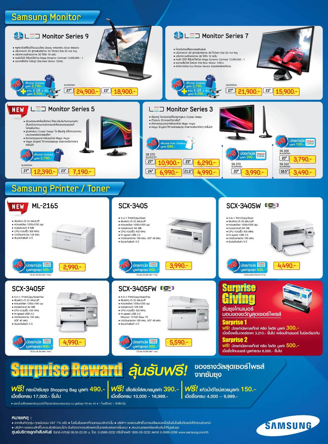ตามด้วยแบ็ค เซอร์ไพรส์ รายการคืนกำไรที่สูงสุดถึง 5,000 บาท / รางวัล พร้อมมอบสิทธิพิเศษผ่อนชำระดอกเบี้ยสบายๆ 0% สูงสุดนาน 10 เดือนด้วยบัตรเครดิตที่ร่วมรายการ พร้อมฟรีประกันภัยโน้ตบุ๊ค 1 ปี มูลค่า 3,000 บาททันที ปิดท้ายกับกิฟวิ่ง เซอร์ไพรส์ มอบของสมนาคุณมากขึ้นไปอีก เมื่อซื้อซัมซุง พรินท์เตอร์และโทนเนอร์ ในบิลเดียวกัน รับฟรีทันทีบัตรกำนัลมูลค่าสูงสุด 300 บาทในต่อที่ 1 และรับยูเอสบี ไดร์ฟ มูลค่า 500 บาทในต่อที่ 2 เมื่อมียอดซื้อตามกติกา และเงื่อนไขที่กำหนด