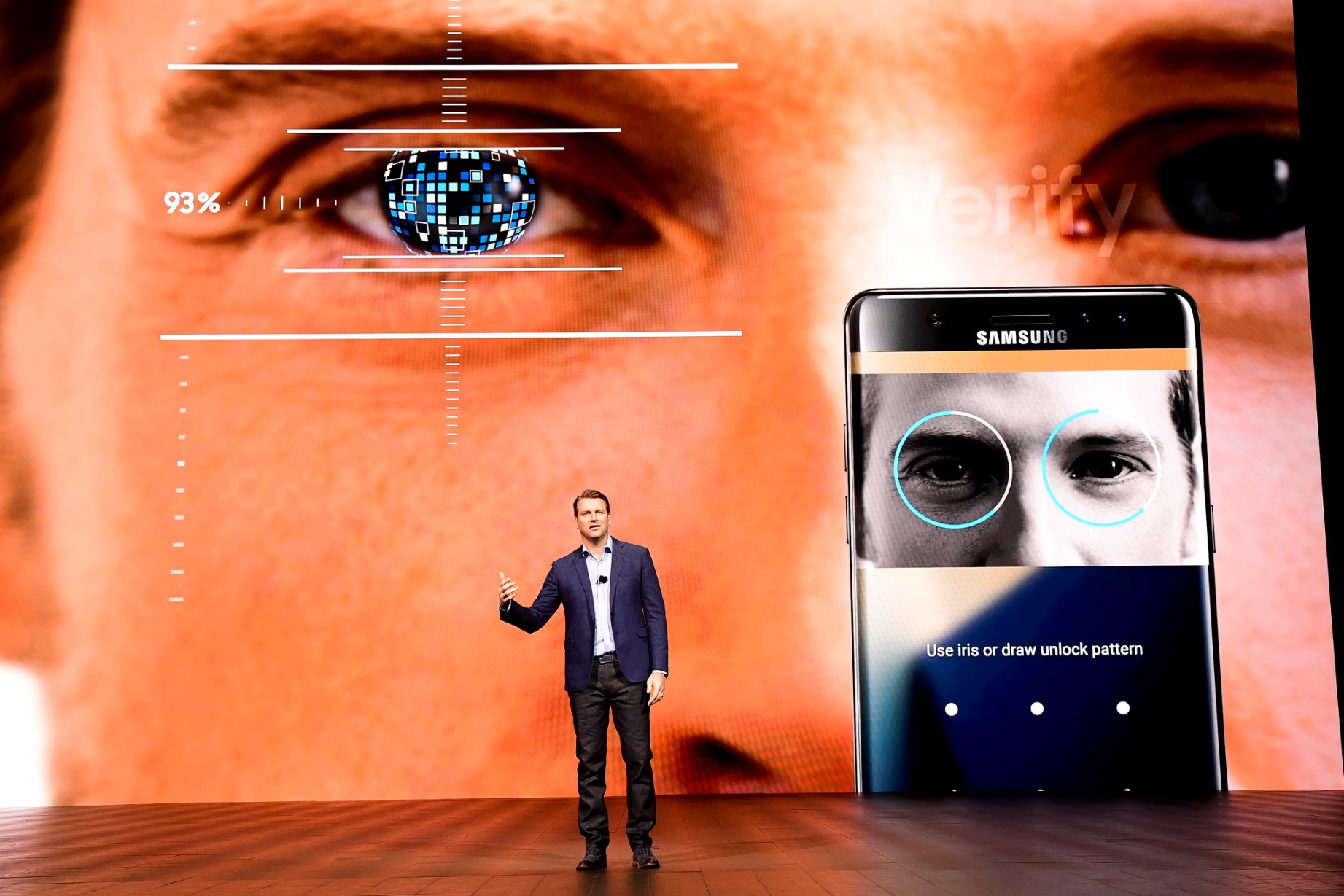 2) ปลดล็อกสมาร์ทโฟนด้วยการสแกนม่านตา (IRIS Scanner) ระบบยืนยันตัวตนโดยใช้ข้อมูลทางชีวมิติหรือไบโอเมตริก และระบบความปลอดภัยชั้นแนวหน้าด้วยการผสานซัมซุง นอกซ์ (Samsung Knox)