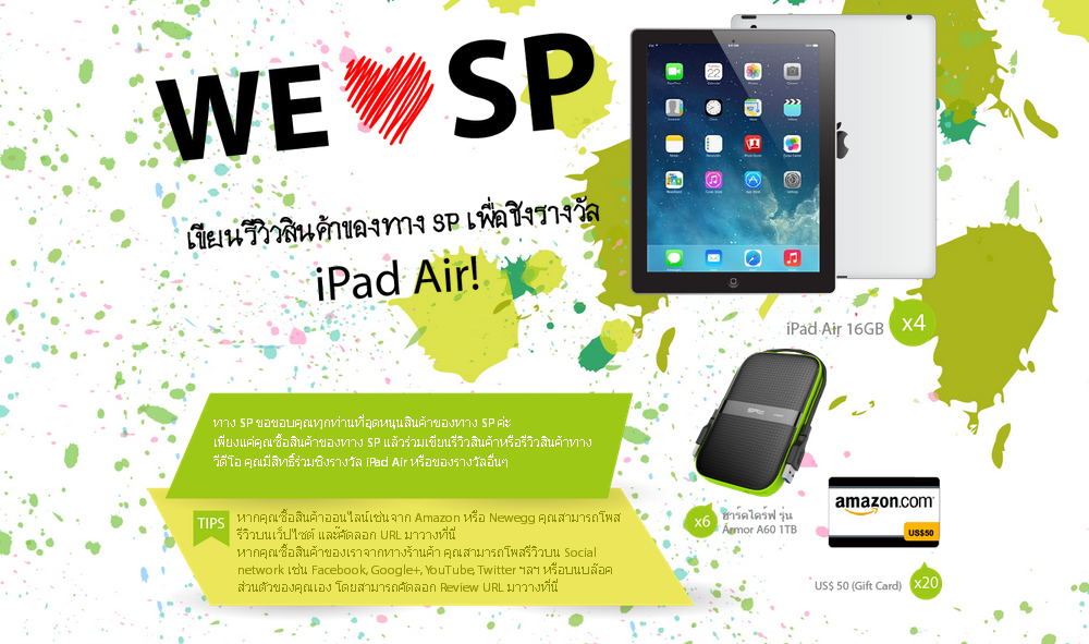 ร่วมสนุกกับกิจกรรม We Love SP Review เม้นท์ดี มีรางวัล ลุ้น iPad Air ได้ที่ :