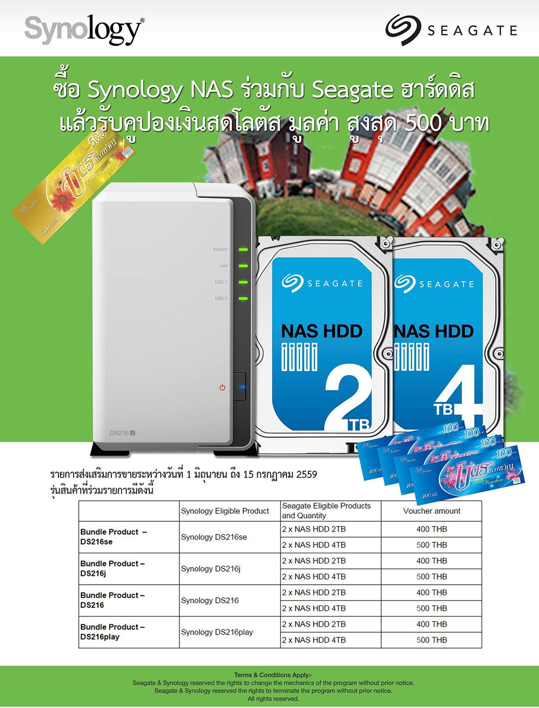 รู้หรือไม่? ซื้อ Synology NAS ร่วมกับฮาร์ดดิส Seagate รับไปเลย คูปองเงินสดโลตัส มูลค่าสูงสุด 500 บาท !!