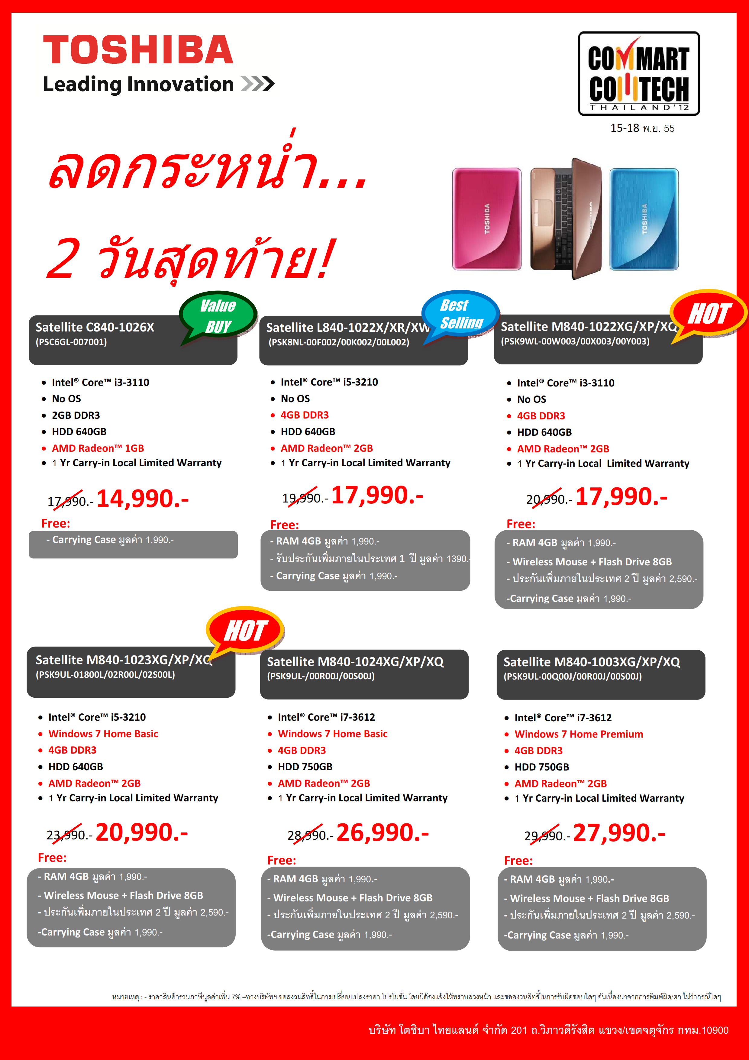 โปรโมชันสินค้าราคาพิเศษสองวันสุดท้ายจากโตชิบาในงาน Commart Comtech Thailand 2012