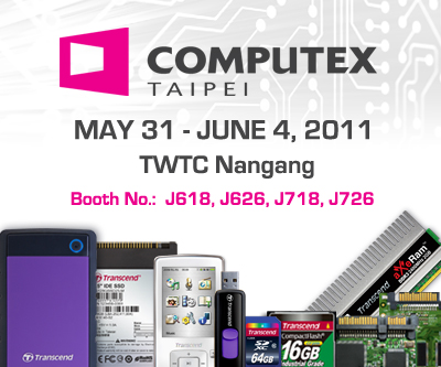 Computex Taipei, เป็นนิทรรศการงานด้าน ICT ที่ใหญ่ที่สุดในเอเชีย โดยจะจัดขึ้นที่ไต้หวันในวันที่ 31 พฤษภาคม ถึง 4 มิถุนายน โดยในปีนี้ทาง Transcend ได้นำผลงานมาจัดแสดงอย่างมากมายในสายการผลิตต่างๆ ไม่ว่าจะเป็น USB แฟลชไดร์ฟ, แฟลชการ์ด, เครื่องเล่นเพลงดิจิตอล, ฮาร์ดไดร์ฟต่อภายนอก, ดิจิตอลโฟโต้เฟรม, และหน่วยความจำคุณภาพสูงมากมาย นอกจากนี้ยังมีการจำแนกผลิตภัณฑ์ด้านคอนซูมเมอร์อิเล็กทรอนิกส์ออกมาอย่างชัดเจน ซึ่งทาง Transcend ได้ภูมใจนำเสนอผลิตภัณฑ์เกรดคุณภาพเพื่อที่จะส่งต่อแก่ผู้เลือกซื้อให้ได้ศักยภาพของสินค้าอย่างเต็มที่ โดยบูธของ Transcend อยู่ที่ตำแหน่ง J618 ชั้น 1 ของ Nangang Exhibition Hall, ณ Taipei World Trade Center.