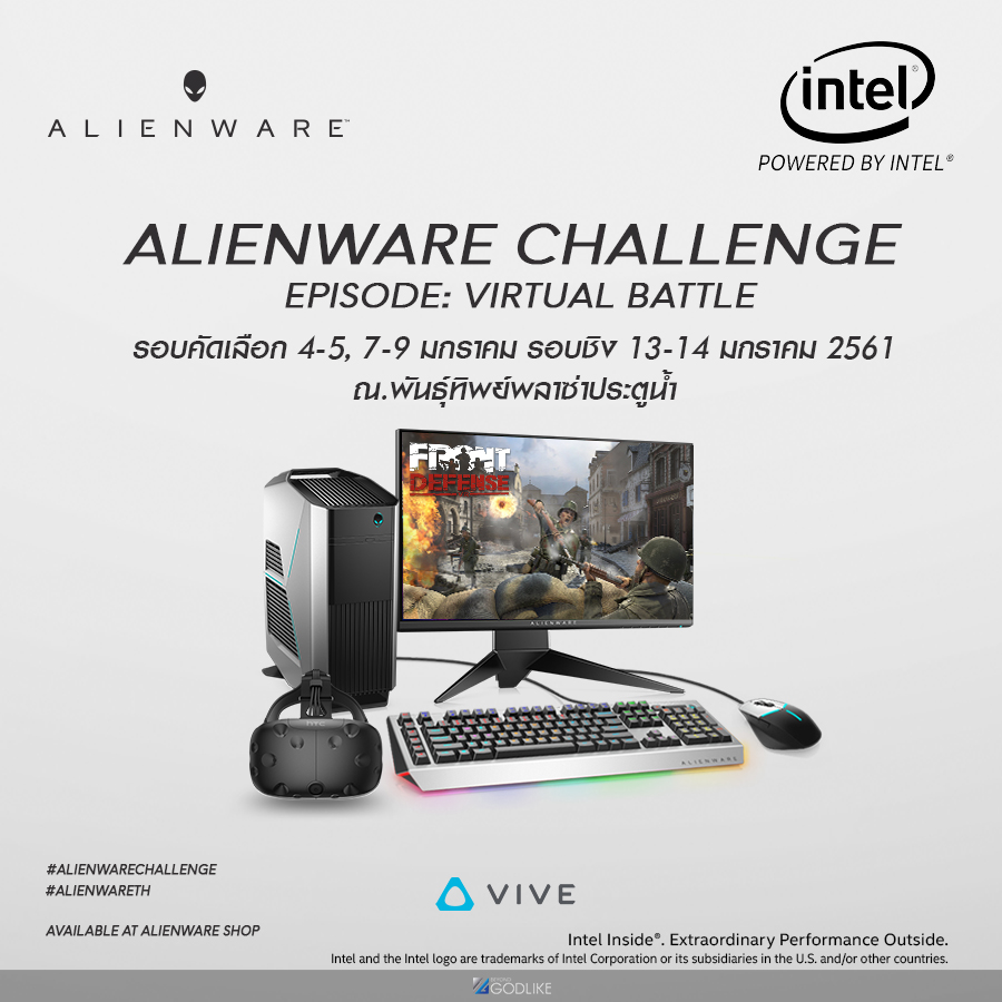 กรุงเทพฯ ประเทศไทย 20 ธันวาคม 2560 – เอเลียนแวร์เตรียมระเบิดความมันส์สนองนี้ดเกมเมอร์ ในสมรภูมิรบสุดเดือด สมัยสงครามโลกครั้งที่ 2 กับการเฟ้นหาสุดยอดนักรบในการแข่งขัน VR e-Sport เกมแนวแอคชั่นชูตติ้ง “Front Defense” เกม Multiplayer รูปแบบ VR ในการแข่งขัน Alienware Challenge Episode: Virtual Battle เปิดรับสมัครผู้เล่นที่จะมาสวมวิญญาณเลือดนักรบ พร้อมจัดทีมมือพระกาฬ 4 คน มาลงสมรภูมิสุดเดือดในครั้งนี้ ทีมใครโหดสุดมาวัดกันได้ เปิดลงทะเบียนตั้งแต่วันนี้ - 24 ธันวาคม 2560 ผ่านทาง http://vr.beyondgodlike.net/ ทีมผู้สมัครสามารถ เข้ามาฝึกซ้อมฝีมือก่อนแข่งจริง ได้ที่ พันธุ์ทิพย์ อีสปอร์ต อารีน่า ในระหว่างวันนี้ - 29 ธันวาคม 2560 ก่อนการแข่งขันคัดเลือก 4 ทีม ภายในวันที่ 4 – 5 มกราคม และ 7 - 9 มกราคม 2561 เพื่อเข้าสู่รอบไฟนอล เฟ้นหาสุดยอดนักเล่นเกมตัวจริง ในวันที่ 13 - 14 มกราคม 2561 ณ พันธุ์ทิพย์ อีสปอร์ต อารีน่า ชิงรางวัลกว่า 1 แสนบาท ติดตามรายละเอียดเพิ่มเติมได้ที่ http://vr.beyondgodlike.net/