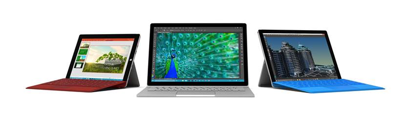 นอกจากนี้ ไมโครซอฟท์ยังได้เปิดตัว Surface Pro 4 (เซอร์เฟซ โปร 4) แท็บเล็ตที่บางที่สุด เบาที่สุด และทรงพลังที่สุด จนสามารถแทนที่แล็ปท็อปของคุณได้อย่างเต็มตัว Surface รุ่นล่าสุดนี้ บางเฉียบเพียง 8.4 มิลลิเมตร มีหน้าจอ PixelSense ขนาด 12.3 นิ้ว พร้อมด้วยสมรรถนะจากชิปประมวลผลอินเทล® คอร์™ m, i5 และ i7 ที่รองรับความต้องการในการใช้งานของทุกคน นับตั้งแต่นักเรียนนักศึกษาไปจนถึงคนทำงาน Surface Pro 4 4 จะวางจำหน่ายด้วยราคาเริ่มต้นที่ 899 เหรียญสหรัฐ5 โดยมีสมรรถนะสูงกว่า Surface Pro 3 ถึง 30% ทำงานได้เงียบกว่าด้วยระบบระบายความร้อนที่มีประสิทธิภาพสูงขึ้น และยังใช้งานยาวนานสูงสุดถึง 9 ชั่วโมง4