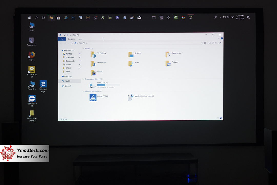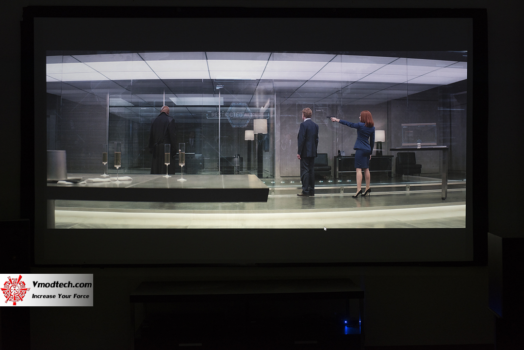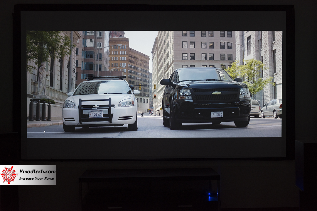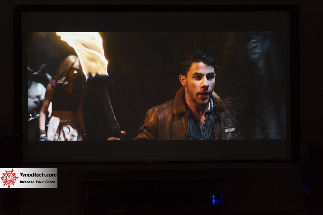 ในการทดสอบวันนี้นั้น ผมได้วาง ACER H6810 ห่างจากจอประมาณ 3.1 เมตร สูงจากพื้นประมาณ 30 เซนต์ ฉายบนจอได้ขนาดประมาณ 118 นิ้วที่อัตราส่วน 16:9 ทำการเชื่อมต่อไปยังคอมพิวเตอร์ผ่านการ์ดจอ MSI GeForce GTX 1050Ti ที่รองรับการแสดงผลระดับ 4K ได้เต็มที่ รีเฟรชเรทที่ 30 Hz ครับ หลังจากปรับแต่แล้วผมนี่ร้องว๊าวเลยกับความคม ความชัดที่ได้จาก ACER H6810