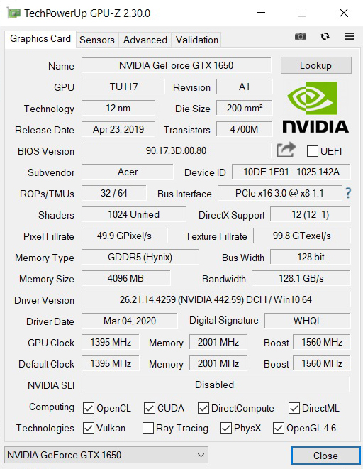| .Graphic Card | . NVIDIA GeForce GTX 1650 (4GB GDDR5) |