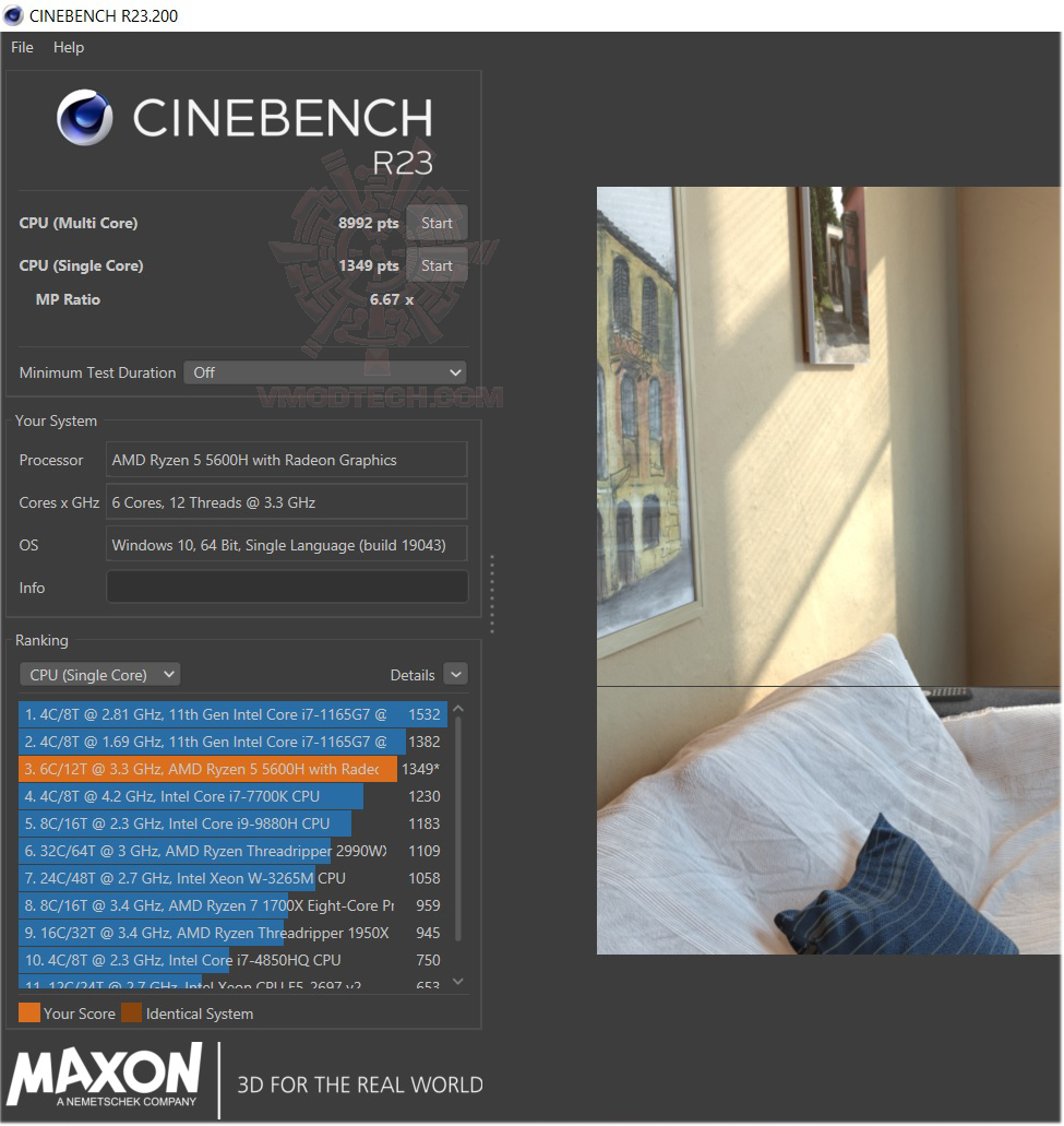 Cinebench ซีรี่ย์ก็เรนเดอร์กันได้แรงเลยครับกับซีพียู AMD RYZEN 5 5600H รีดพลังกันได้เยี่ยมจริงๆ แรงเต็มทั้ง 6C/12T กันเลยทีเดียวครับ