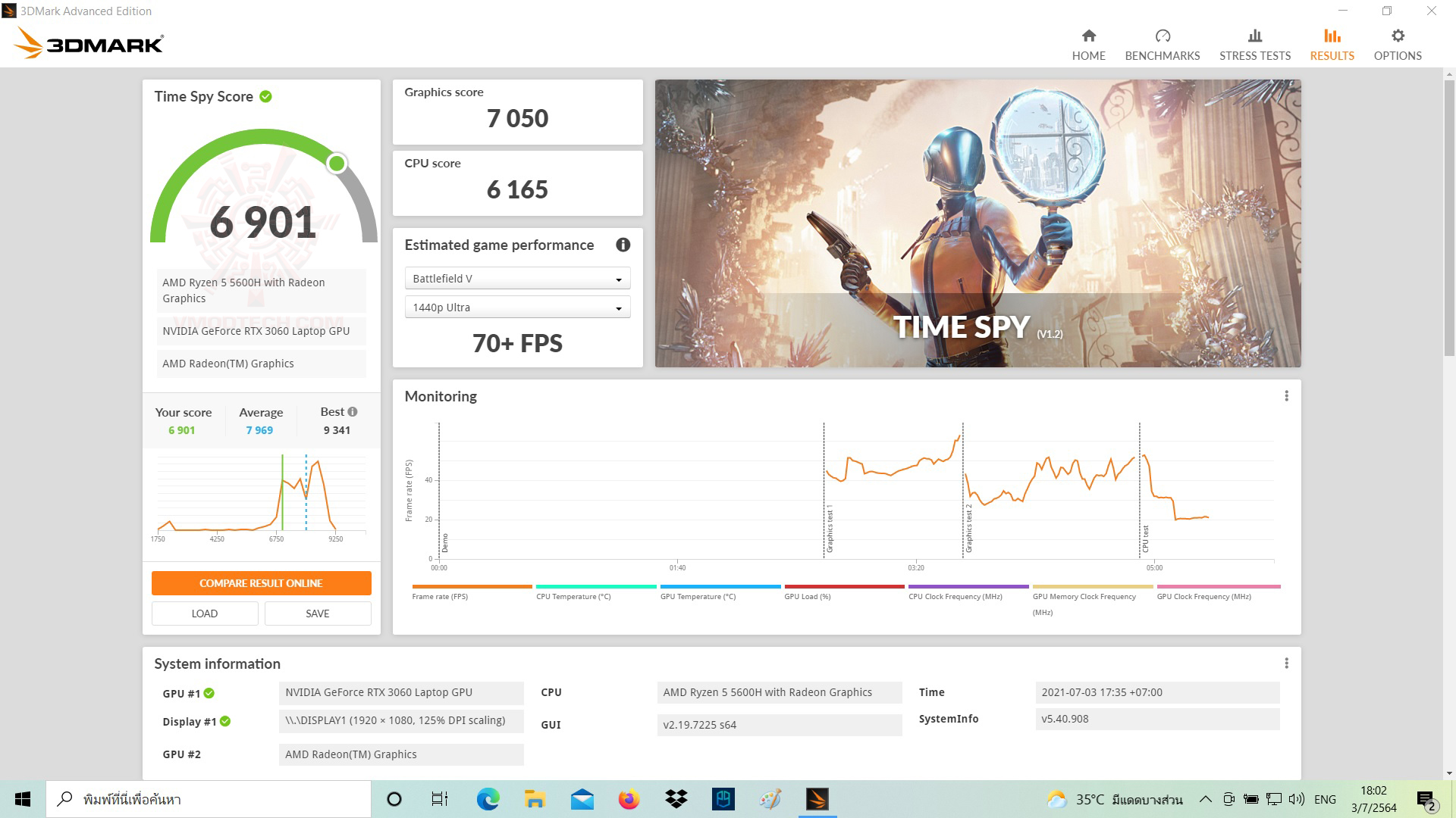 ผลทดสอบกราฟฟิก 3D ทั้ง DX11 3DMark Fire Strike อยู่ที่ 16598คะแนน แรงดีเลยครับ ส่วน DX12 Time Spy อยู่ที่ 6901คะแนนก็ทำออกมาได้ดีเยี่ยมเลยครับ