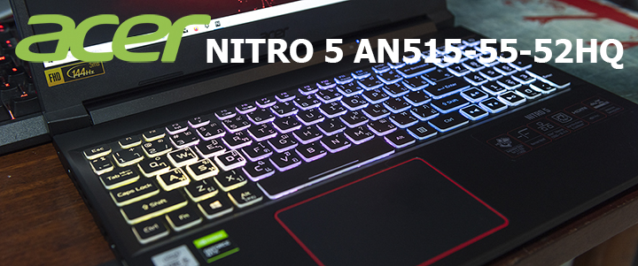 สวัสดีครับ กลับมาพบกับรีวิวโน๊ตบุ๊คกันอีกครั้งซึ่ง วันนี้ผมมีรีวิวโน๊ตบุ๊คที่มีเทคโนโลยีล้ำๆ ACER NITRO 5 AN515-55-52HQ นั้นใช้ CPU รุ่นใหม่ล่าสุดซึ่งก็คือ 10th Generation Intel® Core™ i5 Processors รุ่น i5-10300H processor ( 8 MB Intel® Smart Cache, 2.5 GHz up to 4.5 GHz ) ซึ่งเป็น CPU Mobile ที่มีจำนวนคอร์/เธรด ที่ 4/8 ครับ มีแคช L3 ที่ 8 เมกกะไบท์มาพร้อมกับ Intel Smart Cache ประสานงานกับ GPU NVIDIA® GeForce® GTX 1650 Ti (4GB GDDR6) แรมระบบนั้นติดตั้ง DDR4 มาด้วย 16 กิ๊กกะไบท์ ทำงานแบบ Single Channel ด้าน Storage นั้นมี SSD แบบ M.2 PCIe 2280 ขนาด 512 กิ๊กกะไบท์