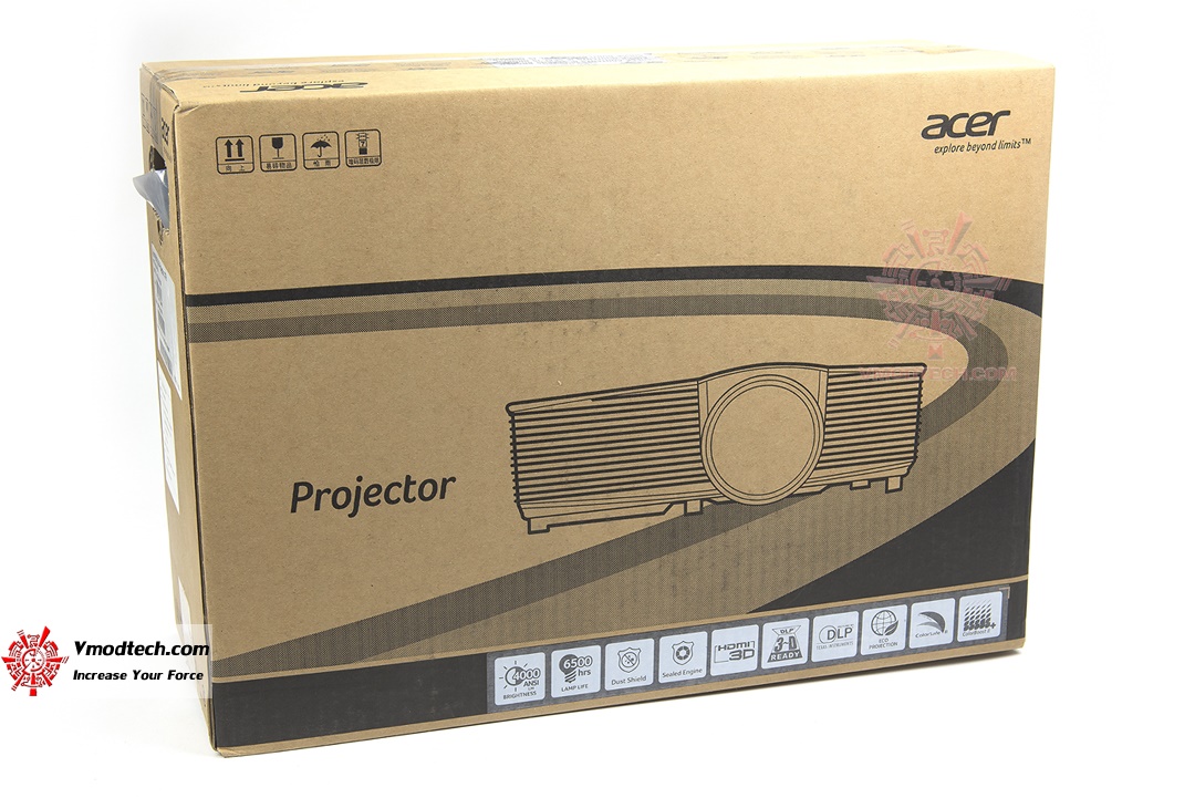 ตัวกล่องบรรจุนั้นทำจากกระดาษกล่องพื้นฐานราคาไม่แพงครับ เมื่อเปิดฝาออกมาจะเห็นมีถุงลมพลาสติกที่จะช่วยลดแรงกระแทกและจะช่วยลดการเสียหายในระหว่างขนส่งได้ดีขึ้น แต่ก็อีกครับโปรเจกเตอร์นั้นค่อนข้างอ่อนไหว ระวังเรื่องกระแทกไว้ก็จะดี