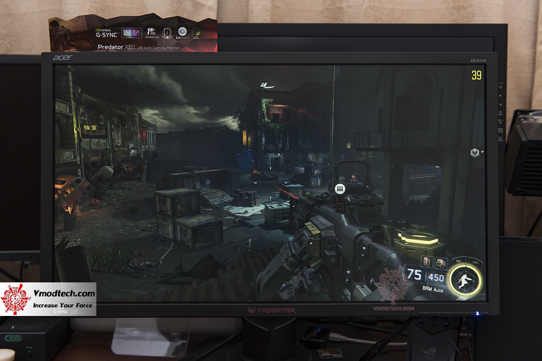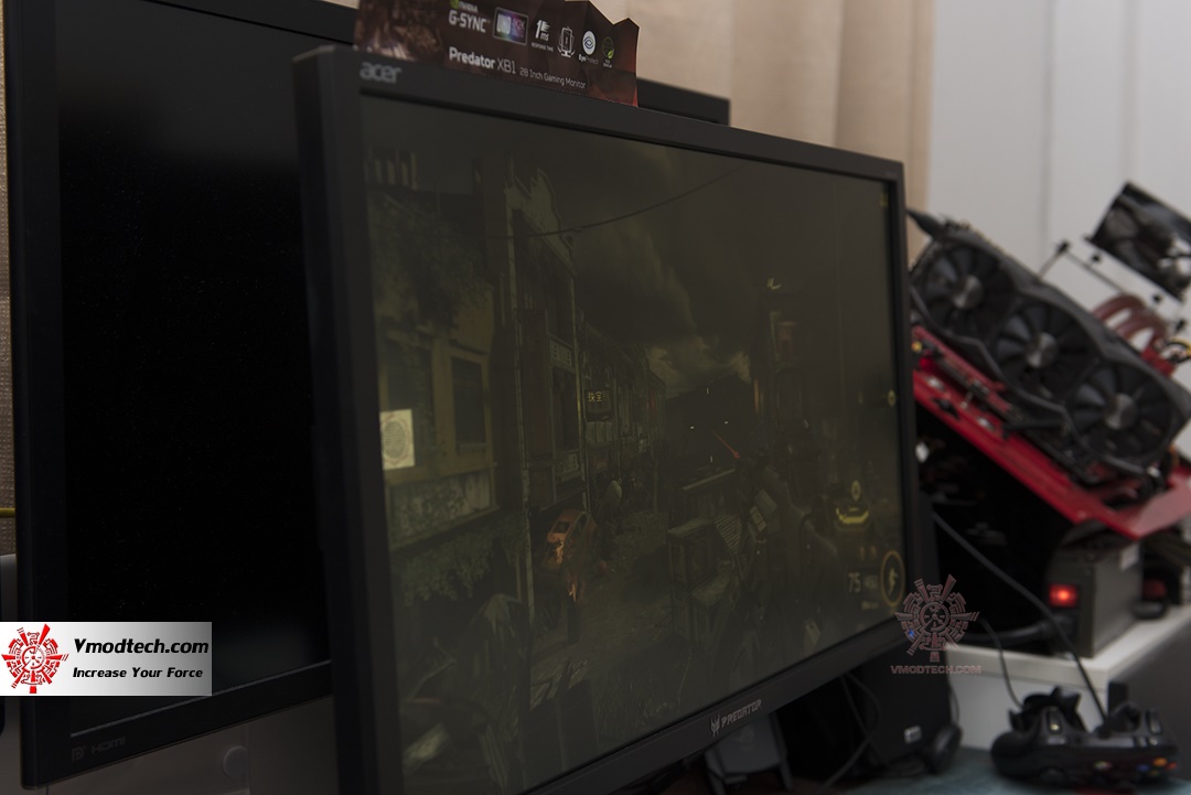 เปิดหน้าจอใช้งานก็พบกับสีสรรที่สวยงามทีเดียวครับ ผมลองปรับแต่ง RGB เพื่อให้มีโทนสีที่ถูกต้องมากขึ้นปรับความสว่างเหลือแค่ประมาณ 25 คอนทราส 55 และปิดโหมดปรับแต่งภาพอื่นๆทั้งหมดเพื่อชมประสิทธิภาพของจอ ACER Predator XB1 ล้วนๆ ต้องบอกว่าไม่ผิดหวังเลยจริงๆครับกับการเล่นเกมส์ สีที่แสดงออกมานั้นไม่แปร๋นหรือว่าเพี้ยนเฉดเลยครับ การจำแนกแยกแยะสีนั้นทำได้ดีไม่มีอาการเหลื่อมสีแต่อย่างใด เมื่อเคลื่อนไหวเมาส์ไปมานั้นก็ไม่แสดงอาการโกสหรือกระพริบที่เกิดมาจากพาแนลซึ่งจอนี้มีเรสป้อนไทม์เพียง 1ms และรองรับการทำงานของ NVIDIA® G-SYNCTM ก็ทำให้การแสดงผลในการเล่นเกมส์นั้นสบายตาและช่วยเพิ่มอรรถรสในการเล่นเป็นอย่างมาก
