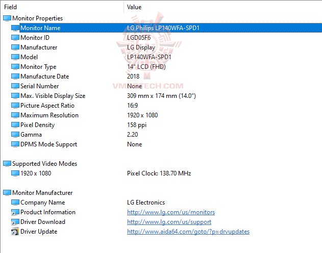 รายละเอียดของพาแนลจอครับ โดยพาแนลมีขนาด 14 นิ้ว เรสโซลูชั่นที่ Full HD