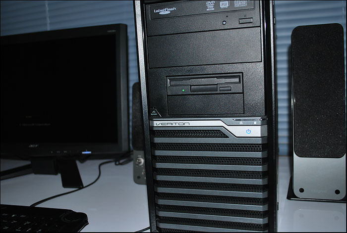 ช่องเสียบยูเอสบีอีก4พอร์ทด้านหน้าพร้อมช่องเสียบไมค์และหูฟังจัดวางไว้ด้านบน บางท่านอาจสะดวกแต่บางท่านก็อาจไม่คุ้นเคยก็เป็นได้นะครับ ส่วนไดรฟ์ DVD-RW เป็นของLG สามารถใช้เขียนLabel Flash ได้ด้วย ไม่พอครับในยุคนี้ยังมีFloppy Drive มาให้อีกด้วย..แต่น่าจะมีช่องเสียบCard Reader ให้ด้วยคงดีไม่น้อย