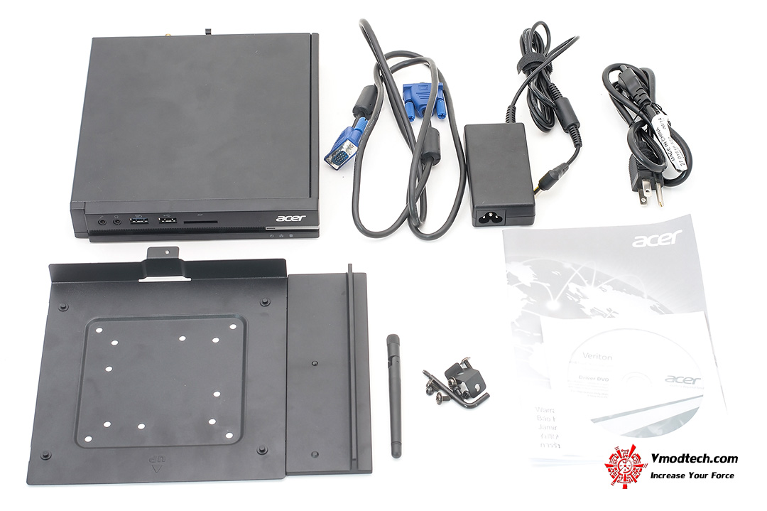 ของภายในกล่องก็มี Acer Veriton N4630G, VGA Cable, Power Adapter, ฐานรองต่างๆ, เสา WiFi, แล้วก็คู่มือกับแผ่นไดร์เวอร์ครับ