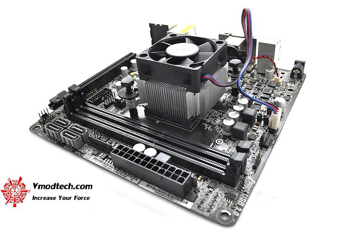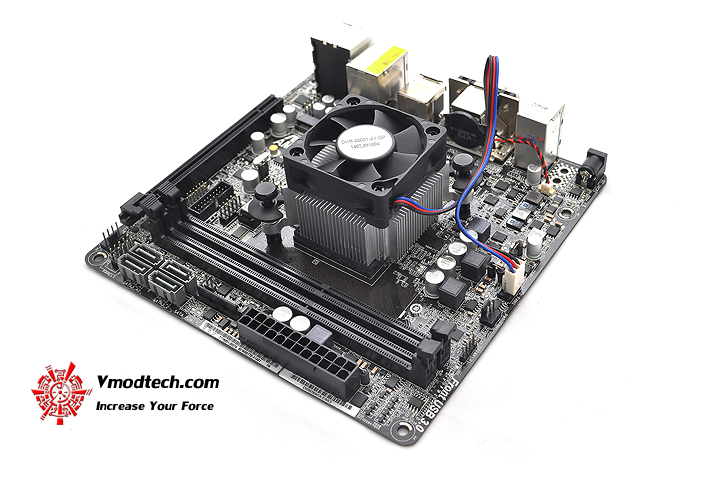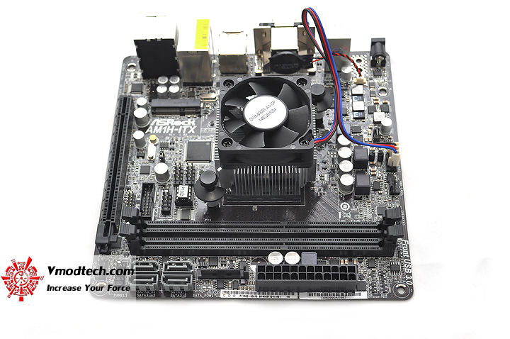 สำหรับเมนบอร์ดนั้นก็มีให้เลือกกันหลายรุ่นครับ สำหรับในรุ่นที่เห็นก็คือ ASRock AM1H-ITX เป็นเมนบอร์ดขนาด Mini-ITX ครับ
